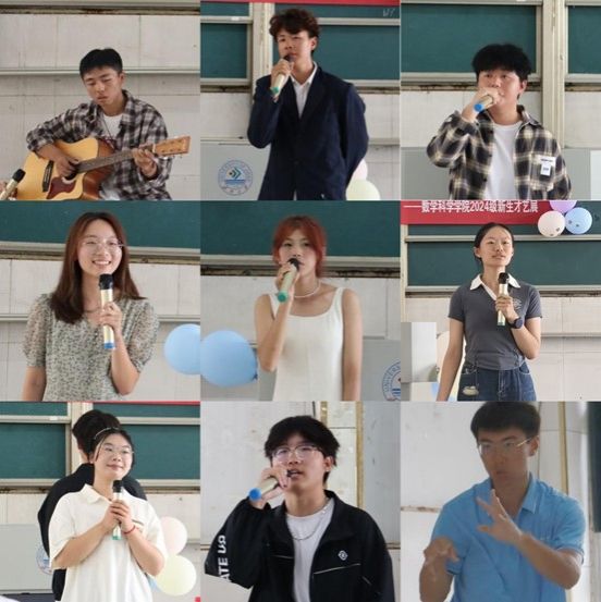 随着新生们轮番上阵,尽情展示自己的才艺,整个星硕教室仿佛化身为一个梦幻与才华交织的舞台。除令人陶醉的歌曲外,还有数科2401李美玉、薄尊鑫带来的舞蹈串烧《No tomorrow》和学28-505宿舍的同学们的青海摇,给大家展现了青春活力;数学2404赵荣斌通过精彩的吉他弹唱《杀死那个石家庄人》,展现了音乐的魅力与力量;数学2401马金鲤以武术表演--太极梅花螳螂拳,彰显了中华传统文化的魅力。每一位表演的新生都用自己的方式,诠释着对大学的热爱与对未来的憧憬。