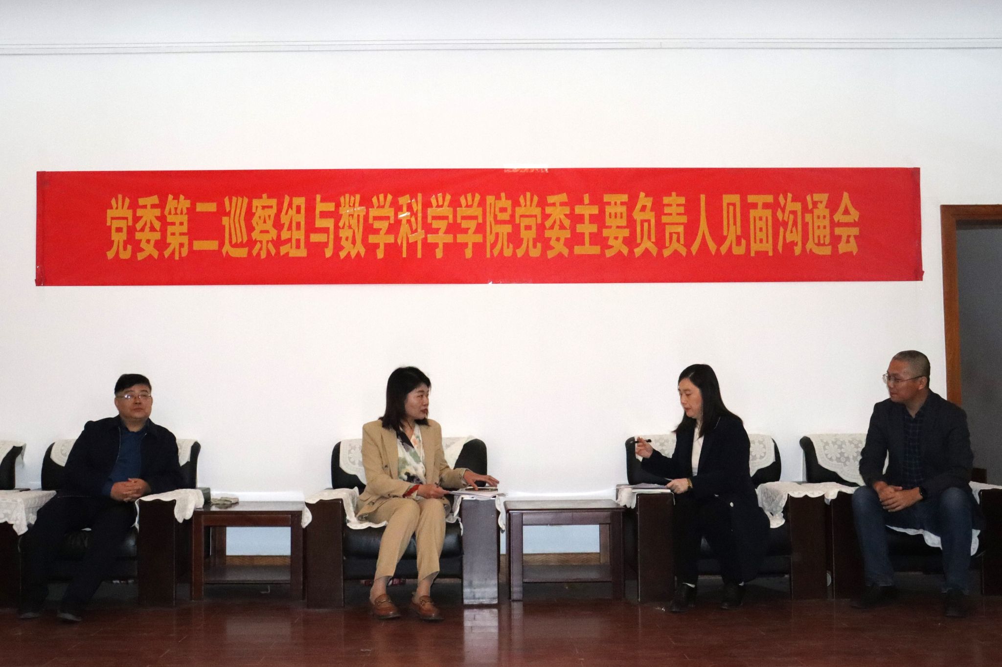 会前,党委第二巡察组组长、纪委副书记孙菲菲与ok138cn太阳集团古天乐党委主要负责人进行了沟通交流。