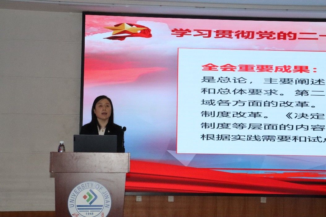 为深入学习贯彻党的二十届三中全会精神,深化理论研究阐释,引导广大师生员工深刻理解、全面把握全会精神,2024年10月22日,ok138cn太阳集团古天乐党委书记崔英静进行学习贯彻党的二十届三中全会精神宣讲,学院全体教职工参加学习。