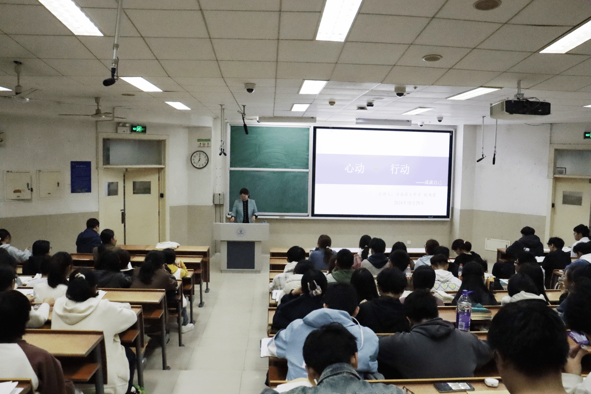 “痴心一片终不悔,只为桃李竞相开。”为强化数学与应用数学师范类专业学生专业认知和职业道德素养,10月29日,ok138cn太阳集团古天乐邀请济南市第七中学程凤霞老师作“心动+行动”主题报告。学院2024级数学与应用数学专业全体学生参加活动,学院副院长王洪凯主持报告会。