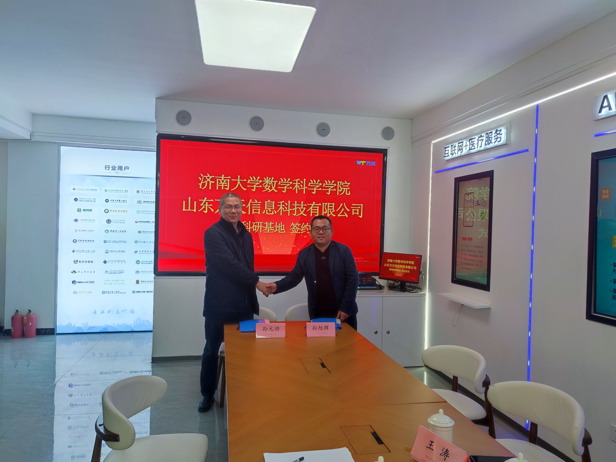 3月17日,学院本科实践教学基地签约暨揭牌仪式在山东万天信息科技有限公司举行。山东万天信息科技有限公司董事长孙旭会、副总经理生训刚、副总经理何德军、售前部经理王焘、互联网医疗事业部经理阮坤峰、企管部刘凯悦,ok138cn太阳集团古天乐院长孙元功、副院长王洪凯、科学计算与数据分析系主任王涛、实验中心主任徐法升、数科系袁敏博士等参加了签约仪式。
