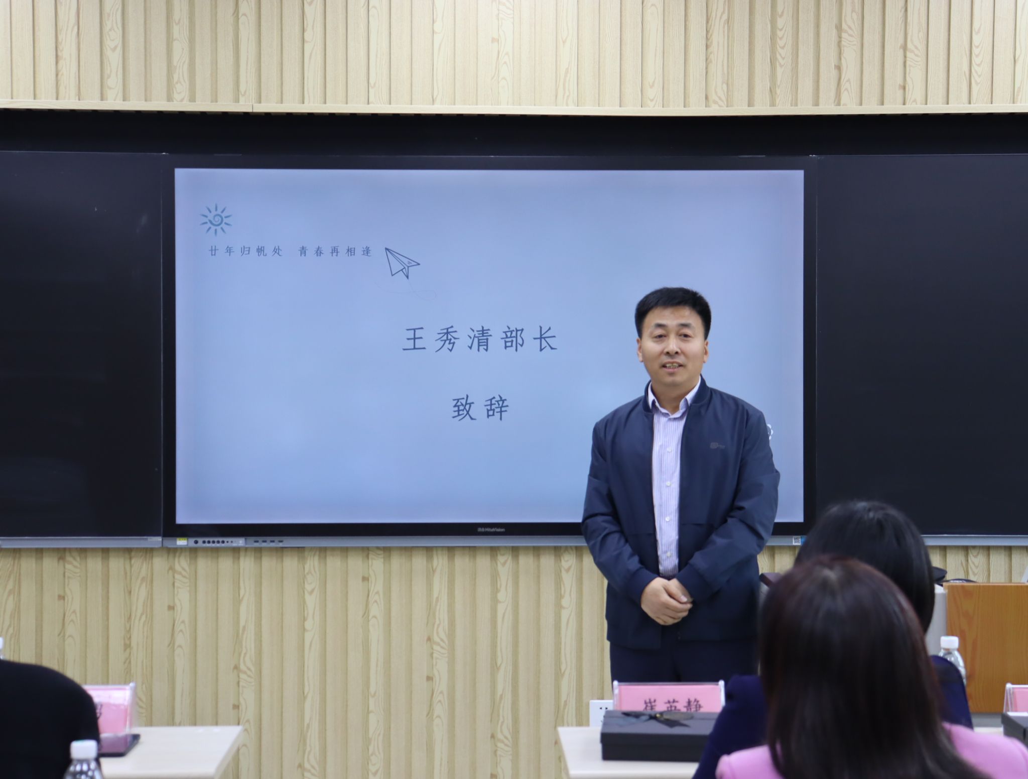 四月和风拂校园,旧友重聚忆流年。4月12日,2005届信息与计算科学专业校友毕业20周年返校聚会,再叙师生情。学院党委书记崔英静,党委副书记、副院长张沂红,副院长靳绍礼以及时任班主任、教师代表参加了本次返校交流活动。