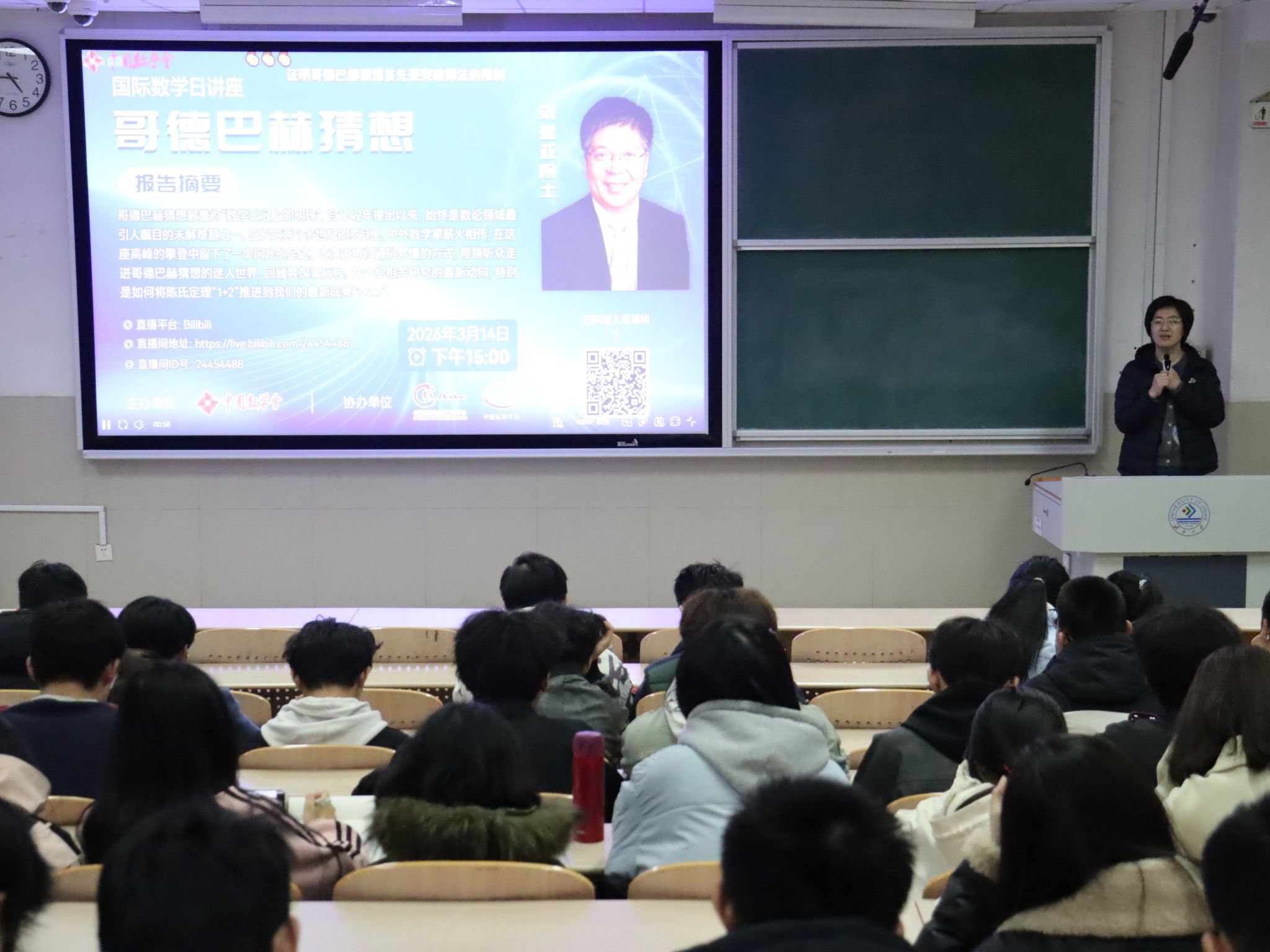 为迎接第七个国际数学日,营造浓厚数学文化氛围,ok138cn太阳集团古天乐于3月14日组织大一学子集中观看由中国科学院院士、山东大学讲席教授刘建亚主讲的《哥德巴赫猜想》专题讲座,学院党委副书记、副院长张沂红,团委书记姬磊及2025级辅导员崔瑜出席活动。