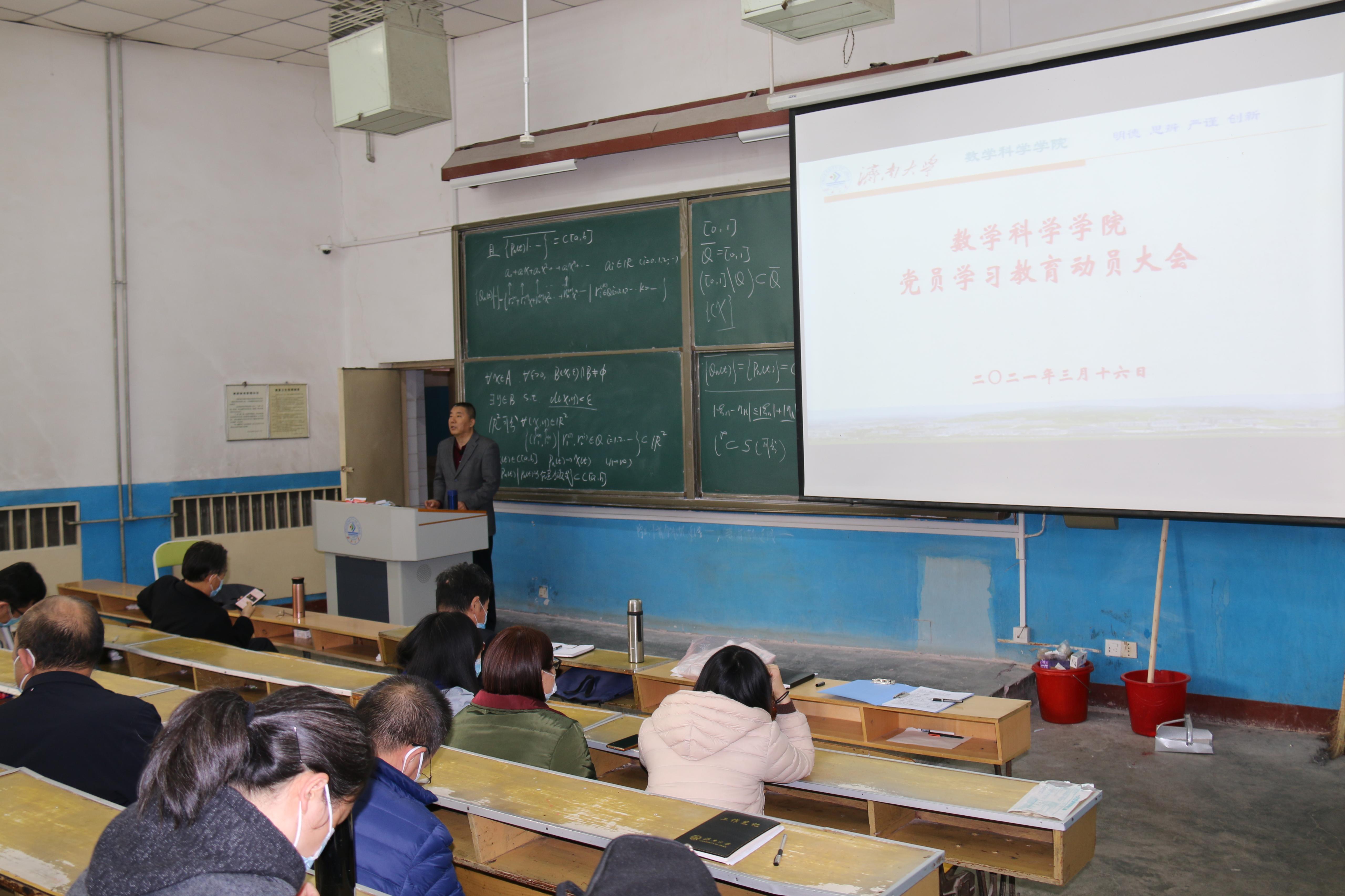 3月16日,ok138cn太阳集团古天乐在梅花馆合三召开党史学习教育动员大会,深入学习贯彻习近平总书记在党史学习教育动员大会上的重要讲话精神和学校党史学习教育动员大会会议精神,学院相关负责人、全体教工党员、学生党员代表参加会议。