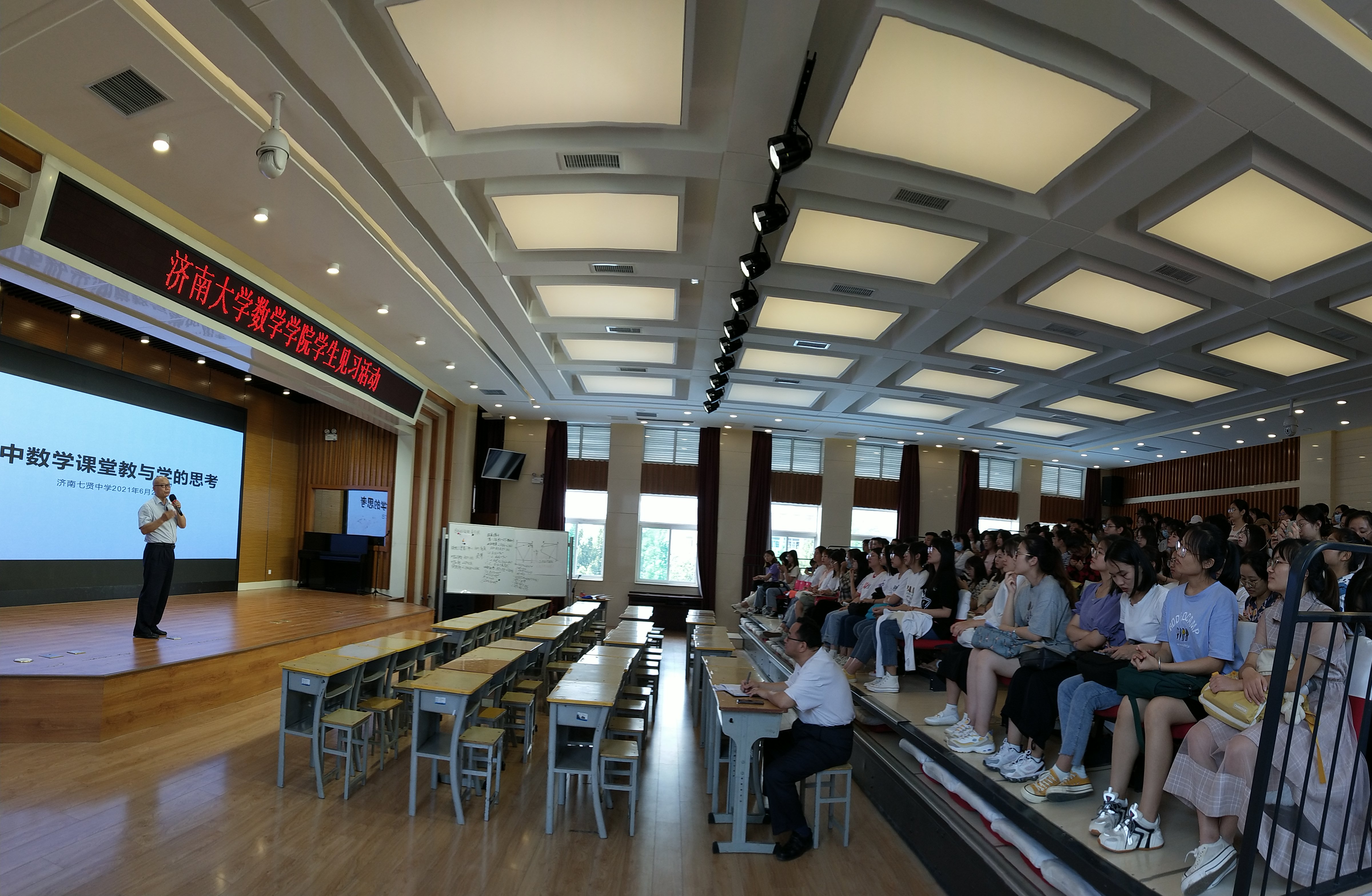 数学与应用数学专业2018级180名本科学生、5名教育硕士研究生,共同参加了本次教育见习活动。本次活动分别前往济南市七贤中学、育贤中学、舜耕中学、ok138cn太阳集团城实验高中,参加了包括公开课、优秀教师成长报告、数学教学研究报告、学校教学运行管理与青年教师成长、教师责任与师德培养等多场现场学习观摩活动。
