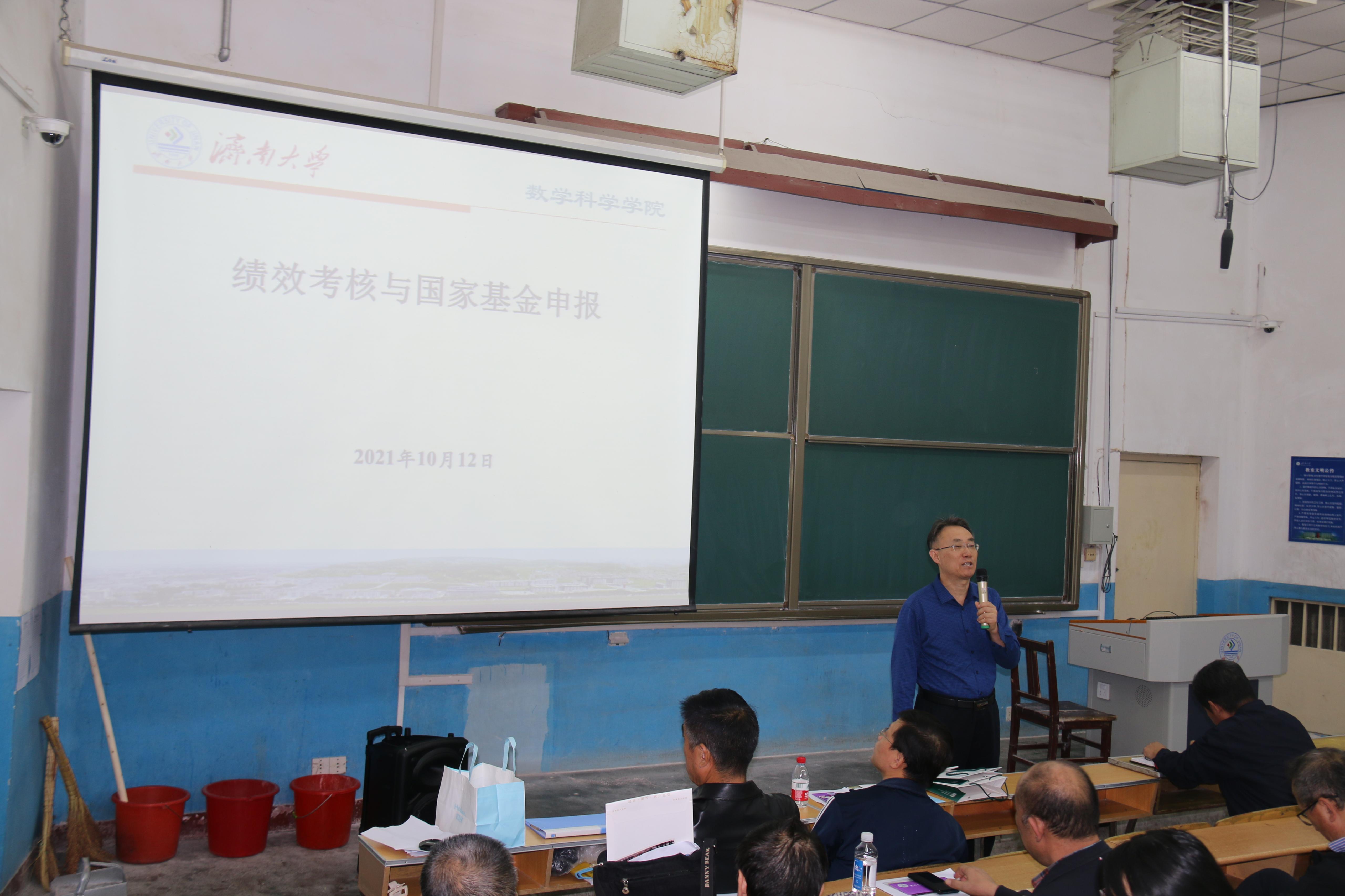 学院院长管延勇从考核原则、考核对象、考核周期与时间、考核内容、考核流程和方法、考核结果确定以及运用等方面全面解读了《ok138cn太阳集团党政群团教辅单位绩效考核办法(试行)》《ok138cn太阳集团中层干部年度考核办法》等文件,重点解读了学院2021年教学、科研、对外交流、科技创新、学生考研率等具体考核指标任务,并就如何保证完成年度工作任务提出了要求。随后,管院长梳理了“十三五”期间校院国家自然科学基金申报情况,总结表扬了学院在“十三五”基金立项的优异表现,全面介绍了“十四五”开局之年学校国家自然科学基金的申报以及立项情况,重点介绍了学院2022年国家自然科学基金申请的初步思路与想法。
