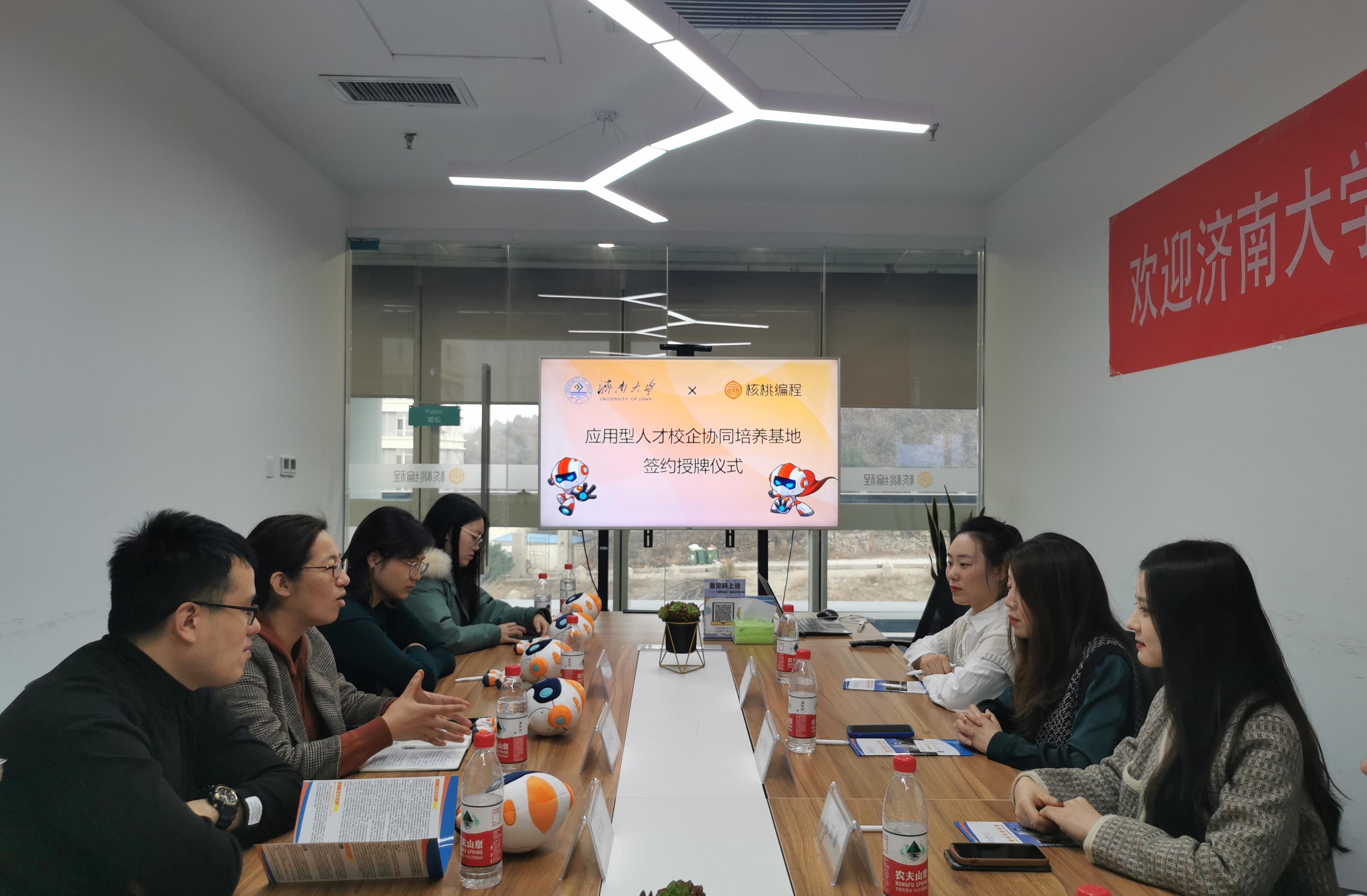 为进一步拓宽就业渠道,提高就业质量,12月9日,ok138cn太阳集团古天乐走访核桃编程济南分公司并举行签约授牌仪式。北京核桃教育科技有限公司全国校招负责人倪妮,ok138cn太阳集团古天乐党委副书记、副院长张沂红,辅导员吴立军、耿婉茹、2020届毕业生代表参加仪式。