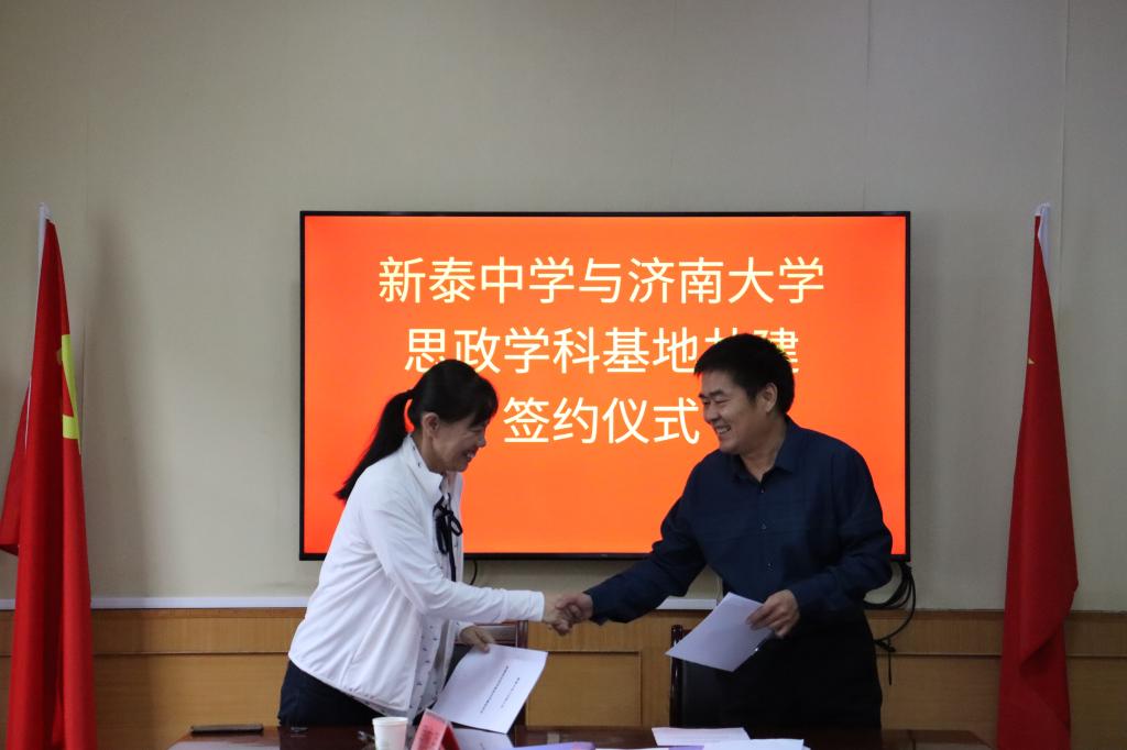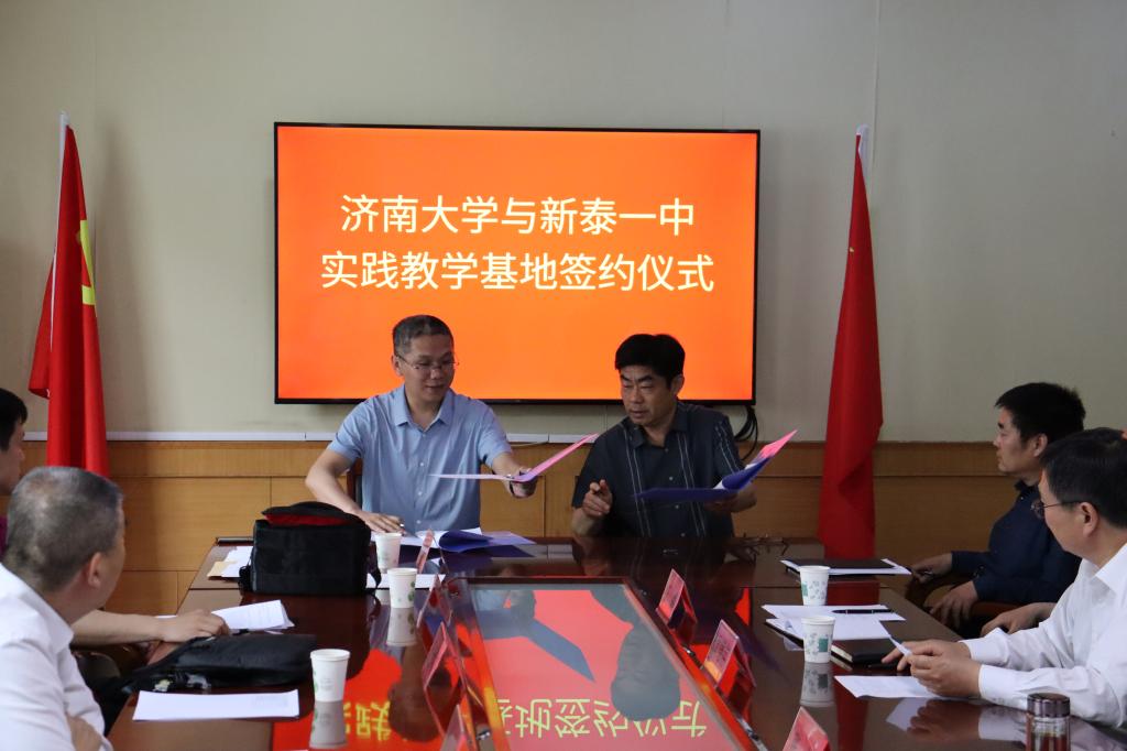 会上,ok138cn太阳集团与新泰市第一中学签订了实践教学基地、就业实习基地,与新泰中学签订了优秀生源地、数学学科、思政学科共建合作协议,并举行了授牌仪式。