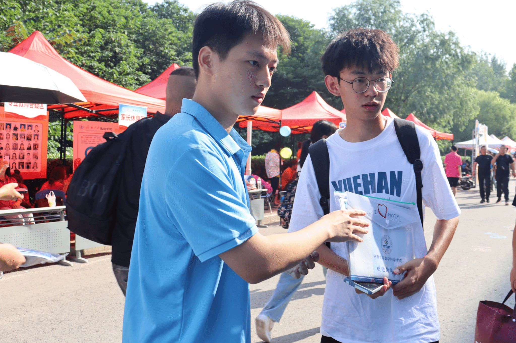 “辰星有灿,‘数’与为伴!心中有‘数’,勇走‘新’路!”等一条条激情昂扬、温暖人心的条幅承载着真挚的情谊,变成连接学院和新生的桥梁。学生志愿者和引导人员等工作人员热情讲解、耐心指引、引导带路、搬运行李等,“同学,宿舍楼在这边,请跟我来”、“同学,行李我帮你拿”……一句句暖心的话语,一双双伸来援助的手,帮助新同学们顺利完成报到,让大家安心入学、舒心生活。