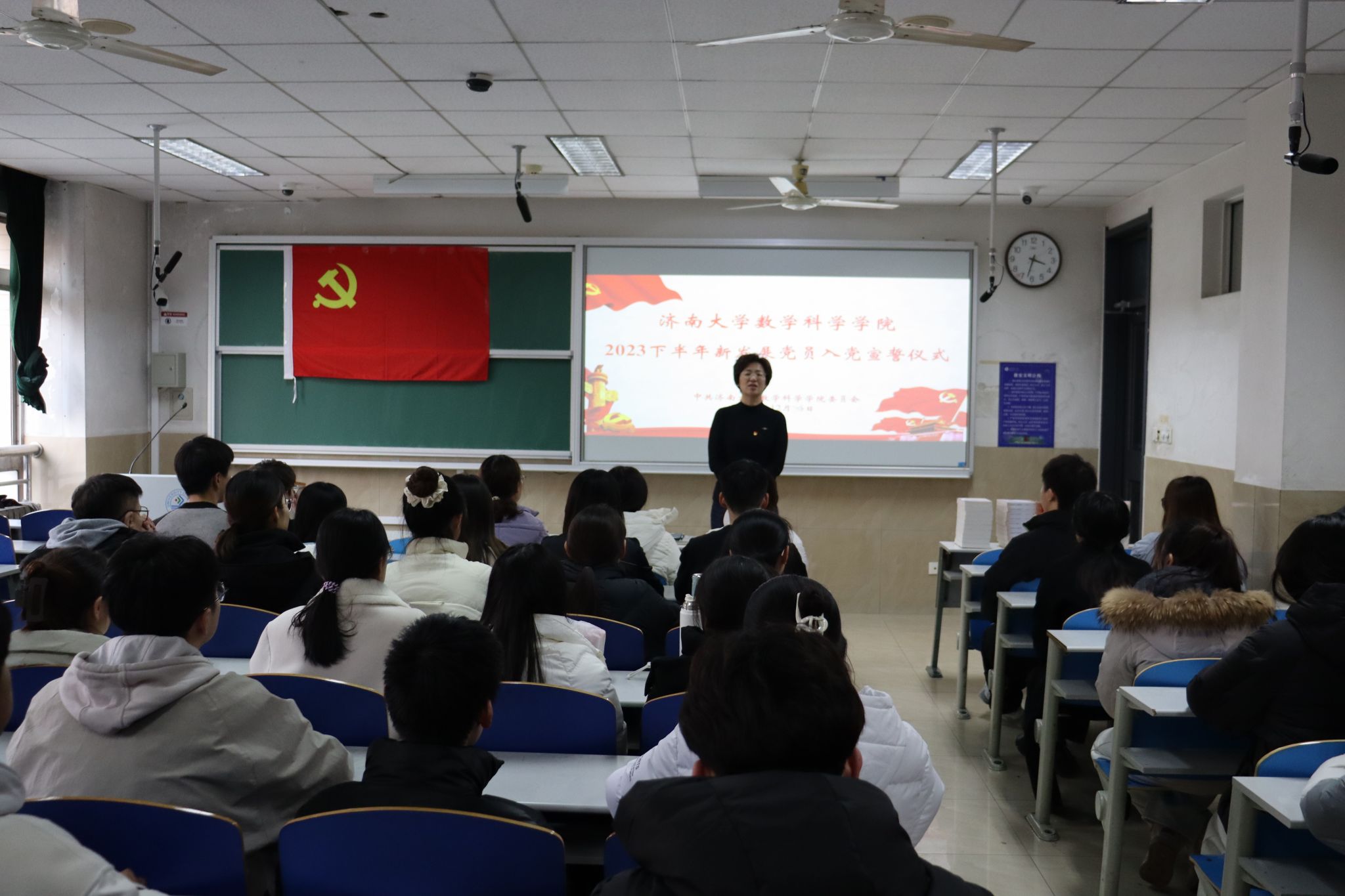 为深入学习贯彻习近平新时代中国特色社会主义思想,强化新发展党员党性修养,增强党组织的凝聚力、战斗力和影响力,近日,学院党委组织2023年下半年新发展党员进行入党宣誓。学院党委副书记张沂红出席仪式并讲话,学院全体学生党支部书记、副书记,以及2023年下半年新发展党员参加宣誓仪式。