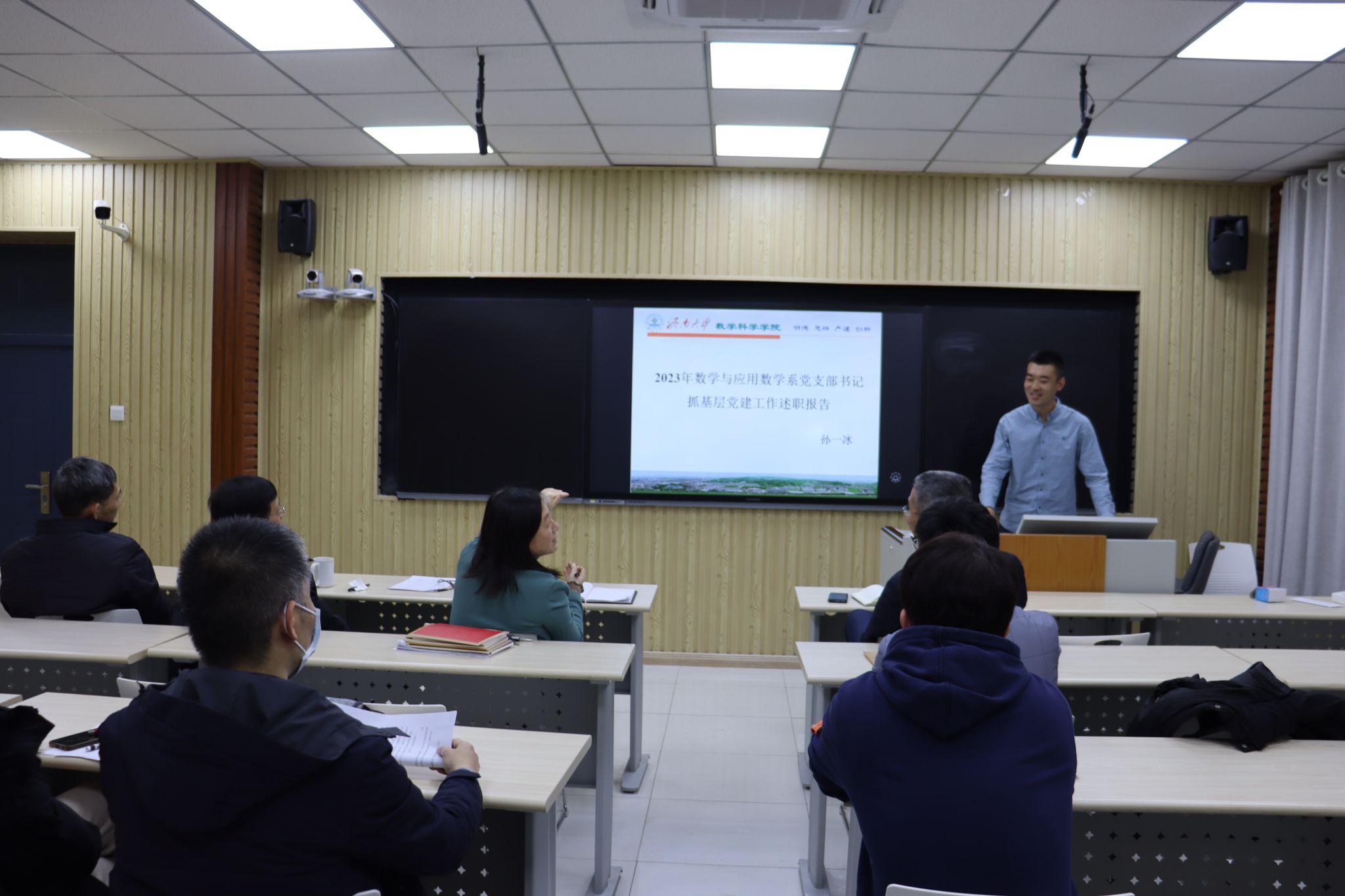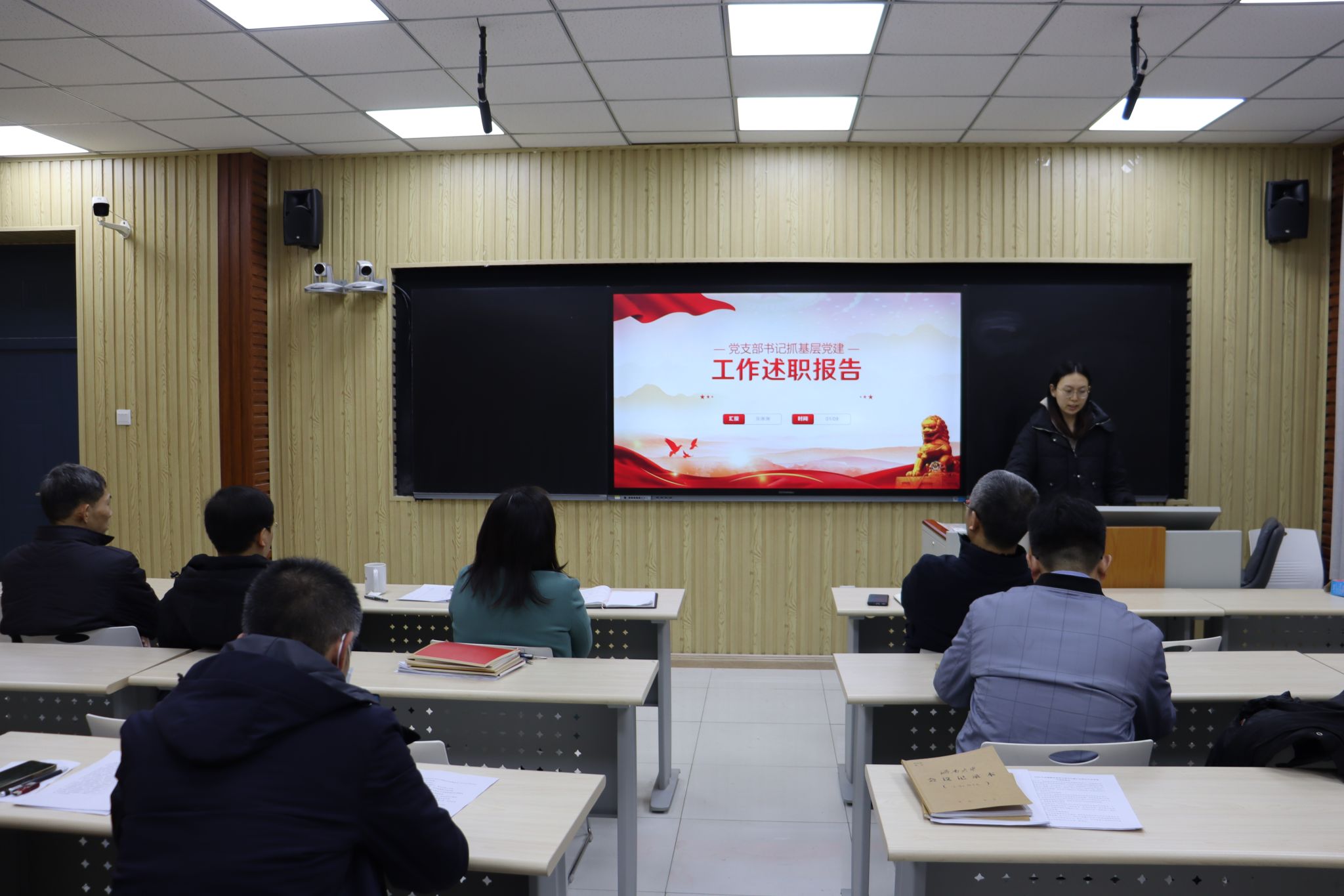 会上,11位支部书记依次上台进行现场述职。他们聚焦学习贯彻习近平新时代中国特色社会主义思想和党的二十大精神,围绕主题教育、基层组织建设、各系工作和党建业务融合情况、主要做法和特色成果等进行汇报,分析了工作上的弱项短板,对下一年度的具体工作进行展望。