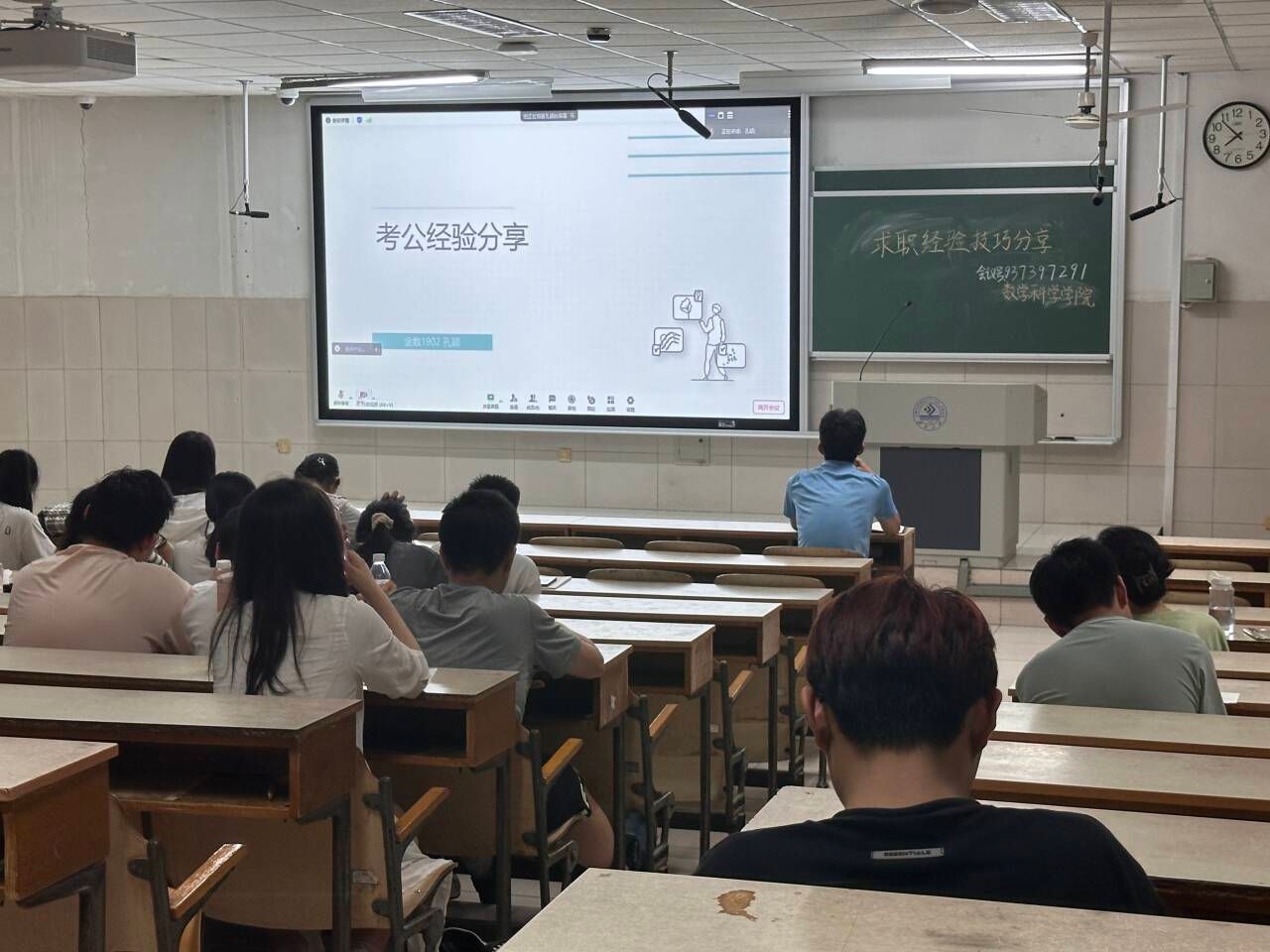 为普及国考省考知识,明确考试相关政策、要求和形式,帮助同学更具体、更清晰地认识相关考试知识,ok138cn太阳集团古天乐在二教顺利举办国考省考经验交流分享会,学院邀请了国考省考上岸的同学为大家分享经验,发挥朋辈引领作用,为考生们提供一个相互学习交流的平台。活动伊始,金数1902孔颖以其扎实的备考策略和严谨的学习态度介绍了如何制定合理的学习计划、高效利用备考资料以及在考前进行有效的冲刺,让大家深刻感受到了国考备考的严谨性与艰巨性。在心态调整方面,她也特别强调了保持良好心态的重要性,指出我们应该保持积极、乐观的心态,不断调整自己的心态,以应对可能出现的困难和挫折。紧接着,宋振永则着重分享了他是如何平衡工作与学习的。他表示国考省考并不如想象中如此困难,并着重强调了我们应重视报名的开始阶段和考试时间节点。国考省考不仅是一场知识的较量,更是一场心态和毅力的考验。备考过程中,我们不仅需要掌握扎实的基础知识,还需要学会如何调整心态,在压力下保持冷静和自信。通过此次分享会,同学们不仅收获了很多实用的备考技巧,更感受到了备考路上的温暖与力量。相信在不久的将来,会有更多的同学在国考省考的道路上取得优异的成绩,为国家建设添砖加瓦!