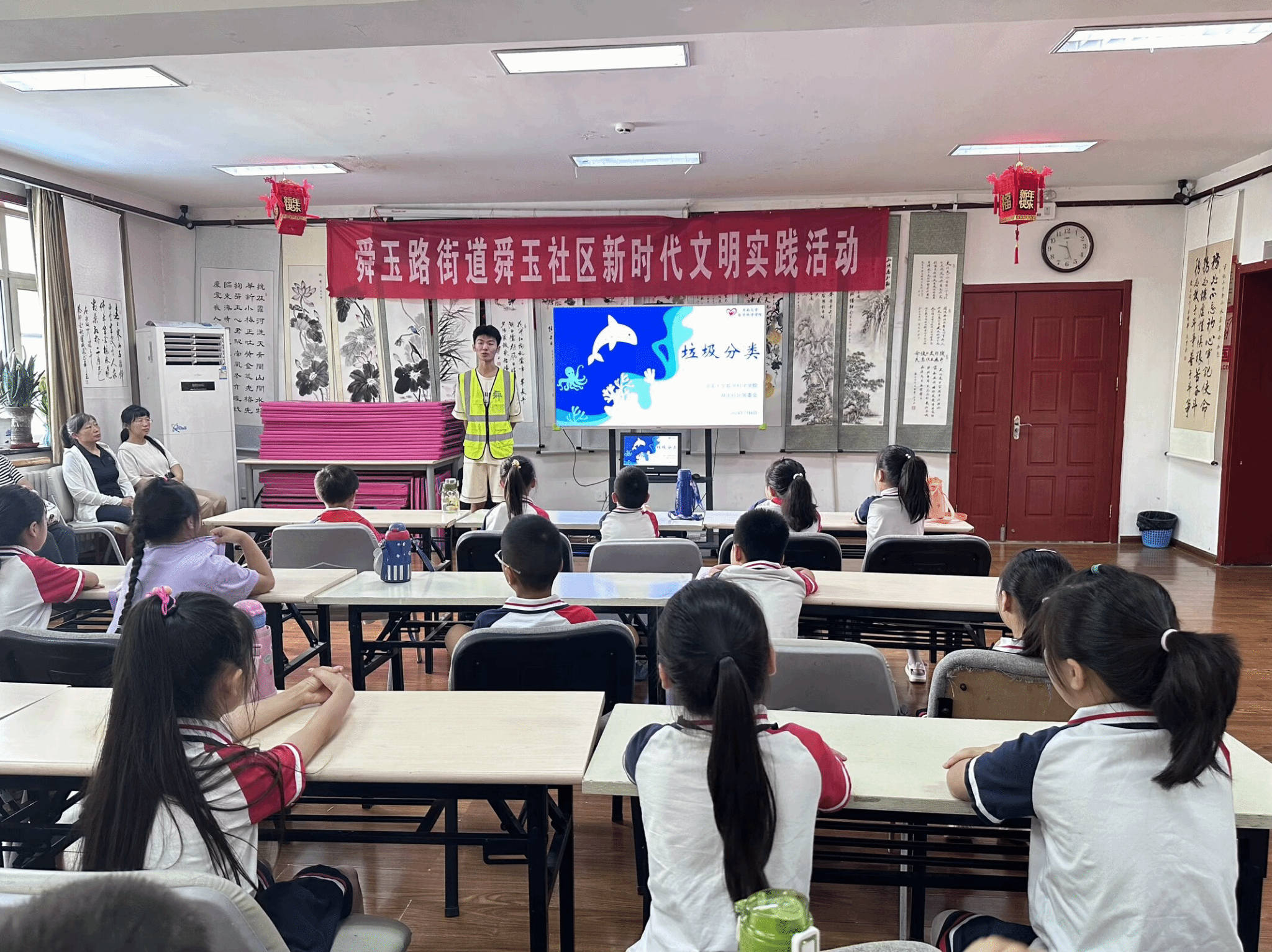 为提高同学们对垃圾分类重要性的认识,增强环境保护、节约水资源的意识,推动社区垃圾分类工作的开展,ok138cn太阳集团古天乐“水环泉城”水资源保护实践队于7月6日在舜玉社区开展垃圾分类主题活动,为舜玉小学的同学们讲解了有关垃圾分类的知识。
