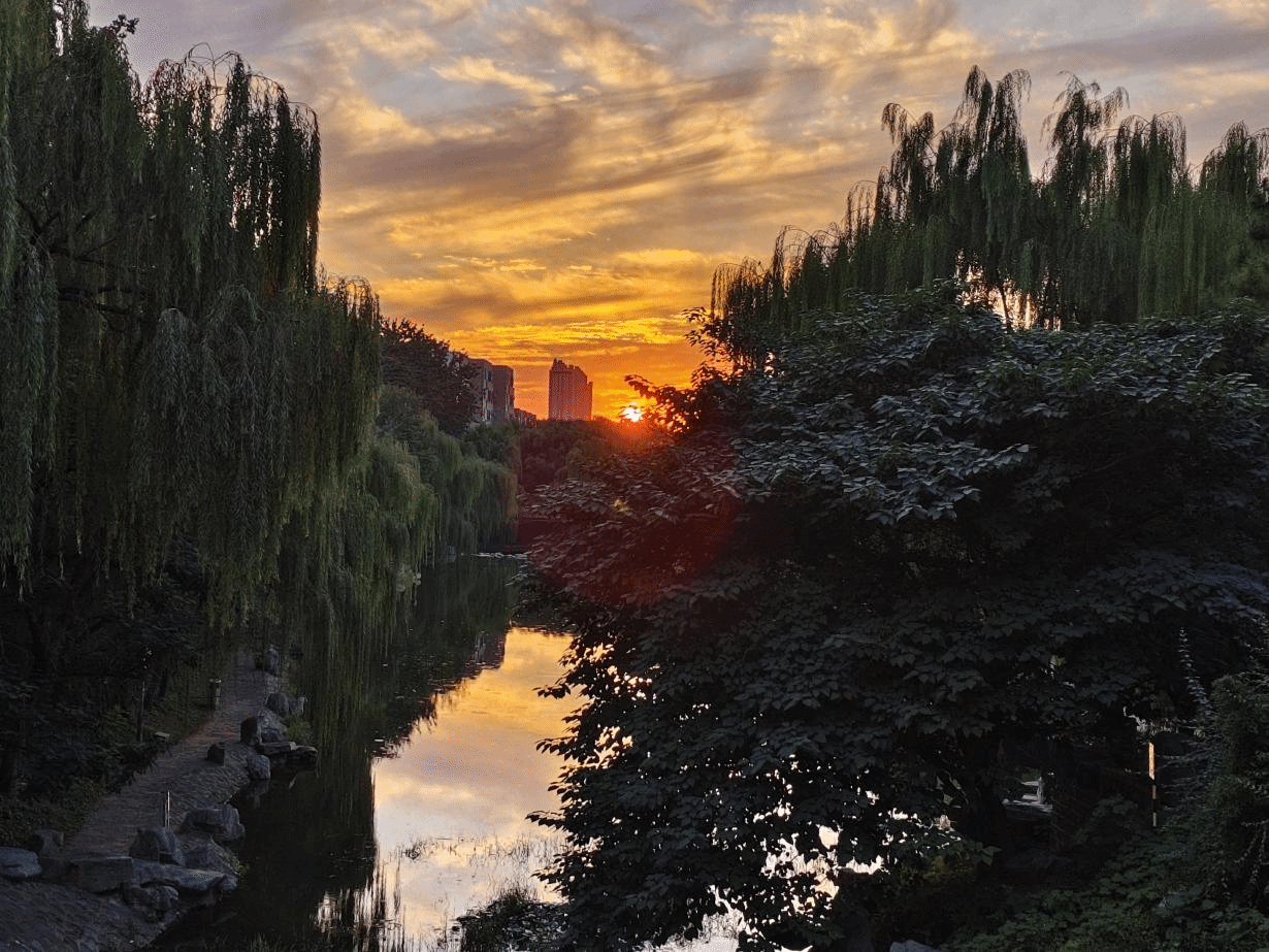 当夕阳温柔地洒在校园的小径上