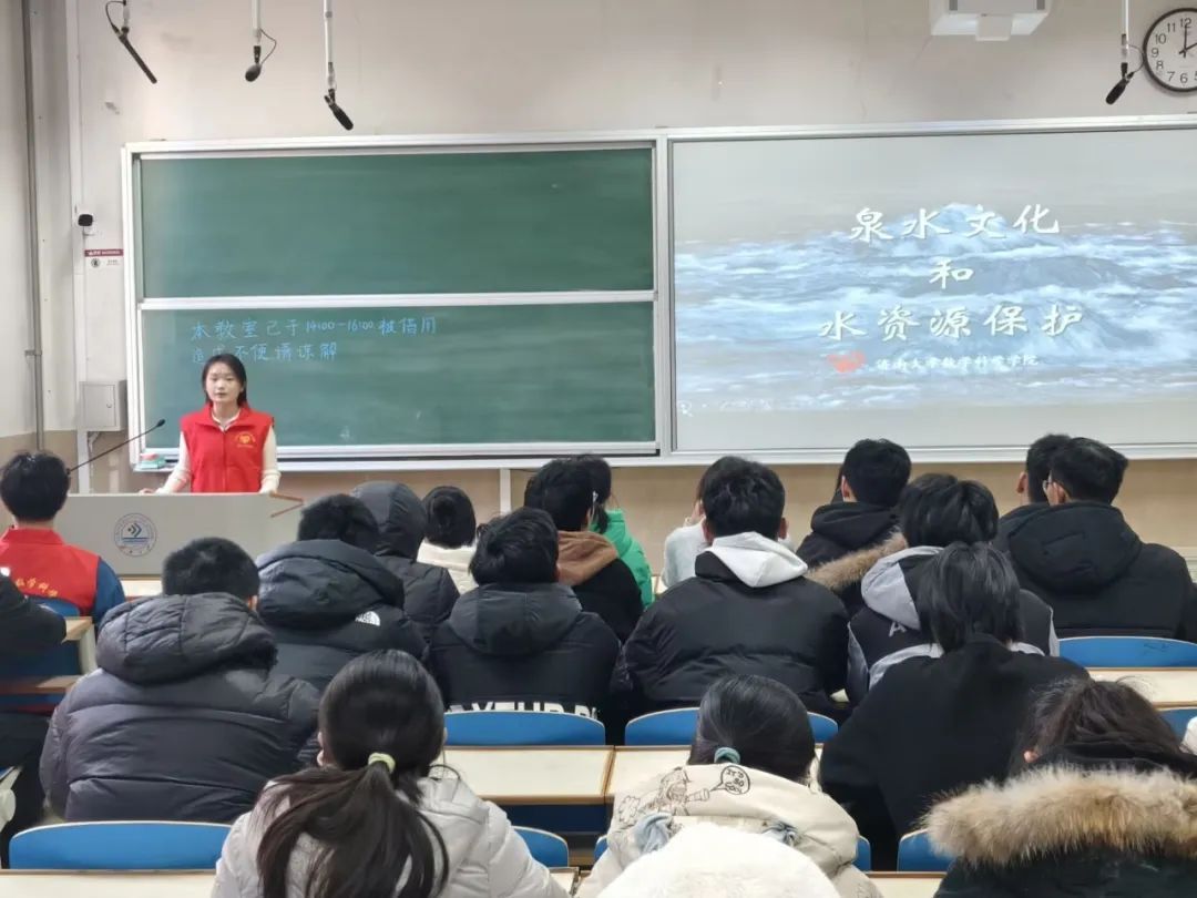 “水清则鱼跃,保护则源长。”为增进同学们对济南泉水文化的了解,让保护泉水的理念深入人心,ok138cn太阳集团古天乐学生会青年志愿者协会联合数学2404团支部于11月26日在第一教学楼106教室开展青社堂宣讲活动。