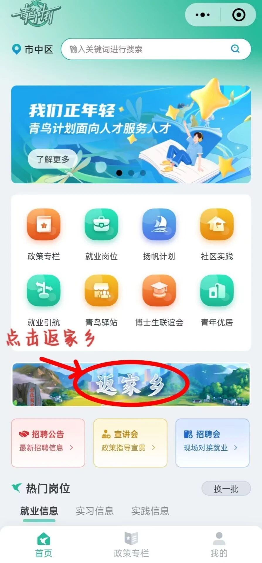 • 家乡公众号报名:关注地方团委公众号,按照要求报名参与寒暑期青鸟计划实习实践活动。