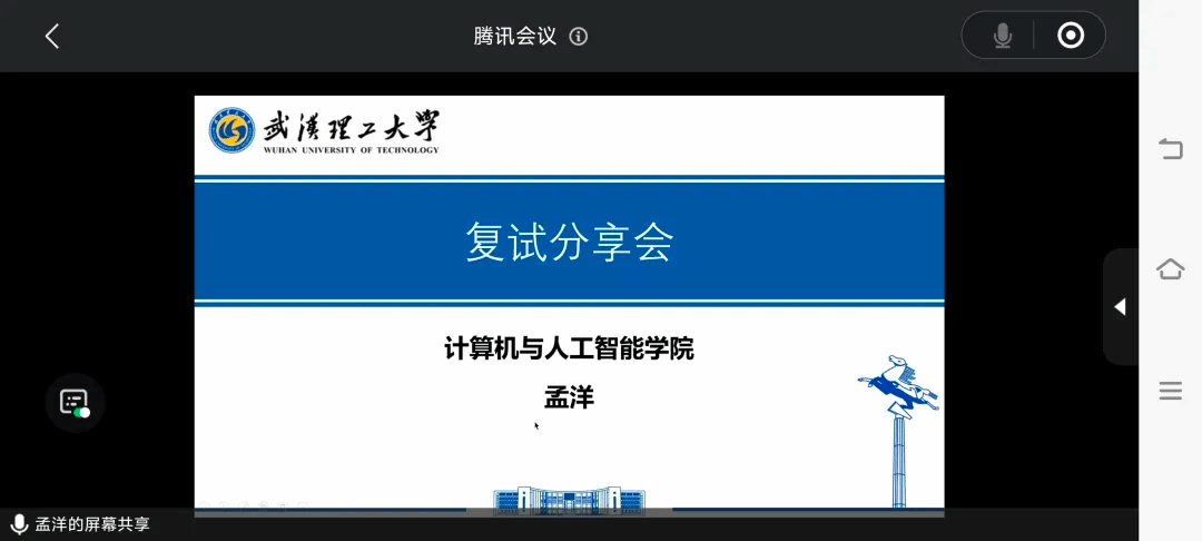活动伊始,主持人于凤仪介绍本次分享会的目的和重要意义。随后,王勇方以辽宁大学为例,强调仔细阅读报考学校官网要求的重要性。孟洋则从面试技巧、导师选择等方面,向同学们介绍常见问题及应对策略。徐熠着重讲解简历撰写以及自我介绍准备的实用技巧,帮助同学们在复试中展现最佳状态。在调剂经验分享环节,张馨月、罗鸣、何燕结合自身经历,分别从个人情况简介、国家线分析、复试线公布以及调剂系统开放前的准备等方面进行详细分享,为同学们答疑解惑。他们从前期准备、复试及调剂流程、应试技巧等多个角度进行全面讲解,为同学们提供宝贵的复试经验和调剂建议。