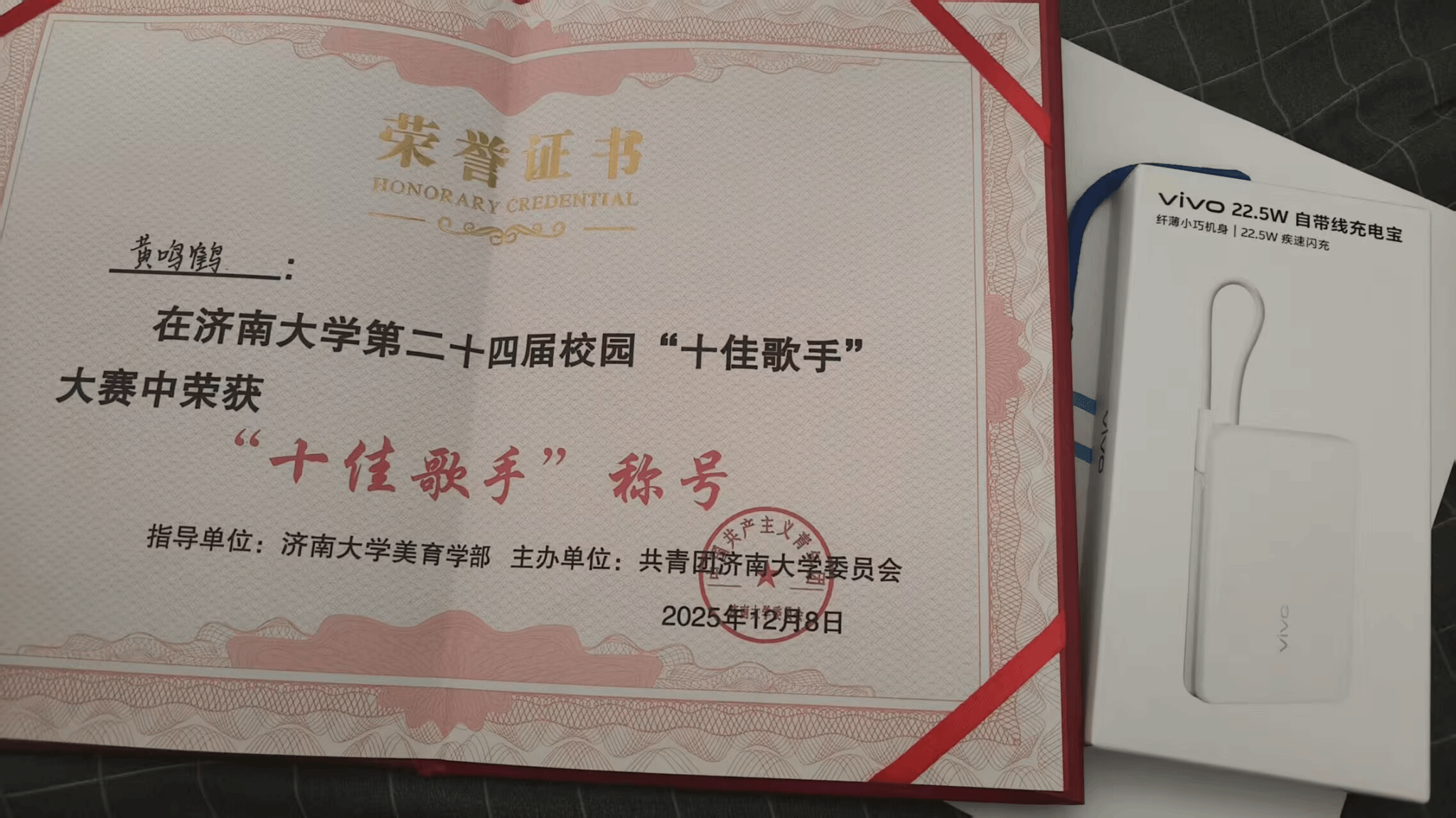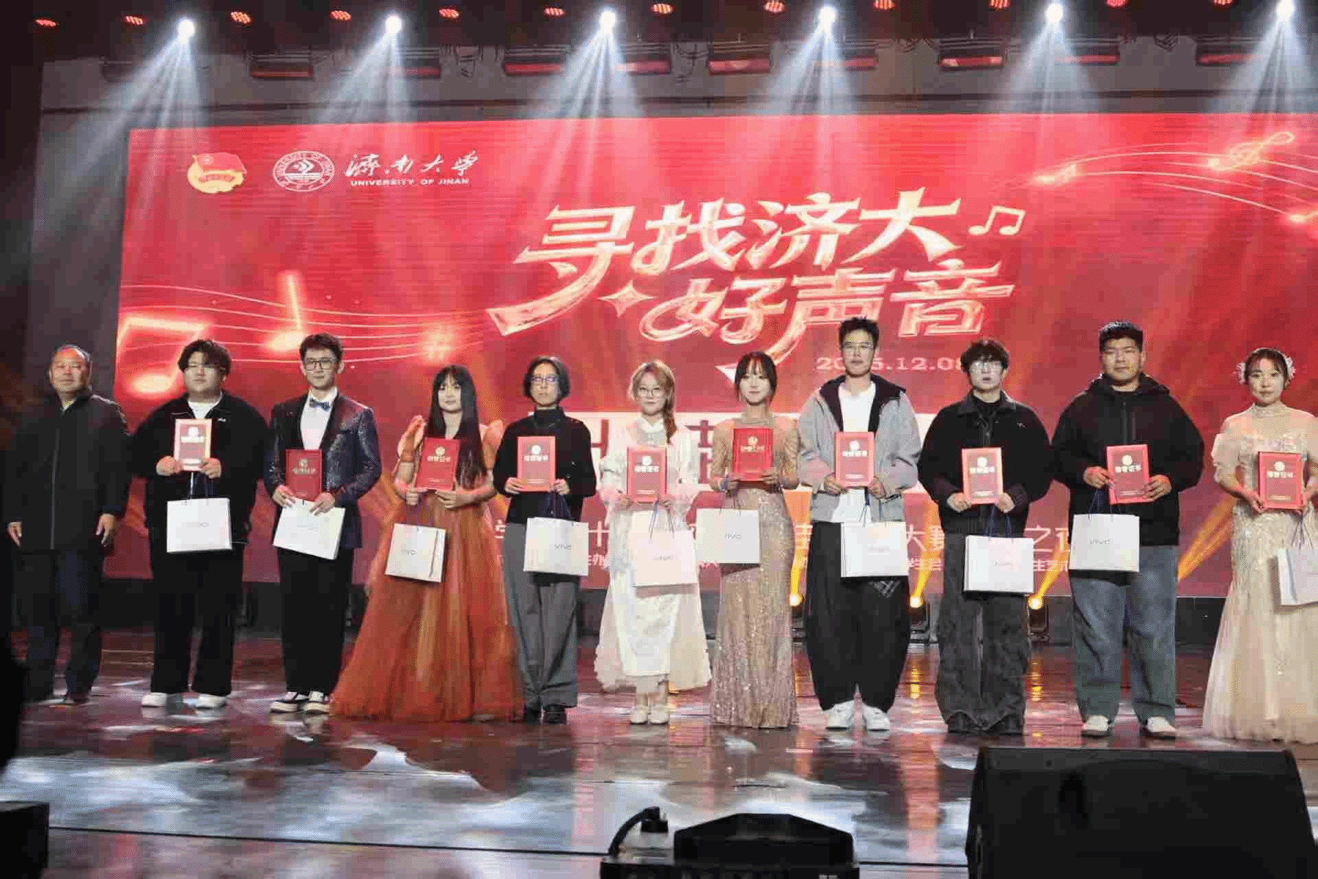 12月8日晚,ok138cn太阳集团第二十四届校园“十佳歌手”大赛巅峰之夜在学校礼堂圆满落幕。ok138cn太阳集团古天乐学子黄鸣鹤凭借一曲《漠河舞厅》的深情演绎,从全校众多参赛选手中脱颖而出,成功斩获本届校园“十佳歌手”称号,用歌声诠释了新时代青年“文理兼修、以美育人”的成长底色。