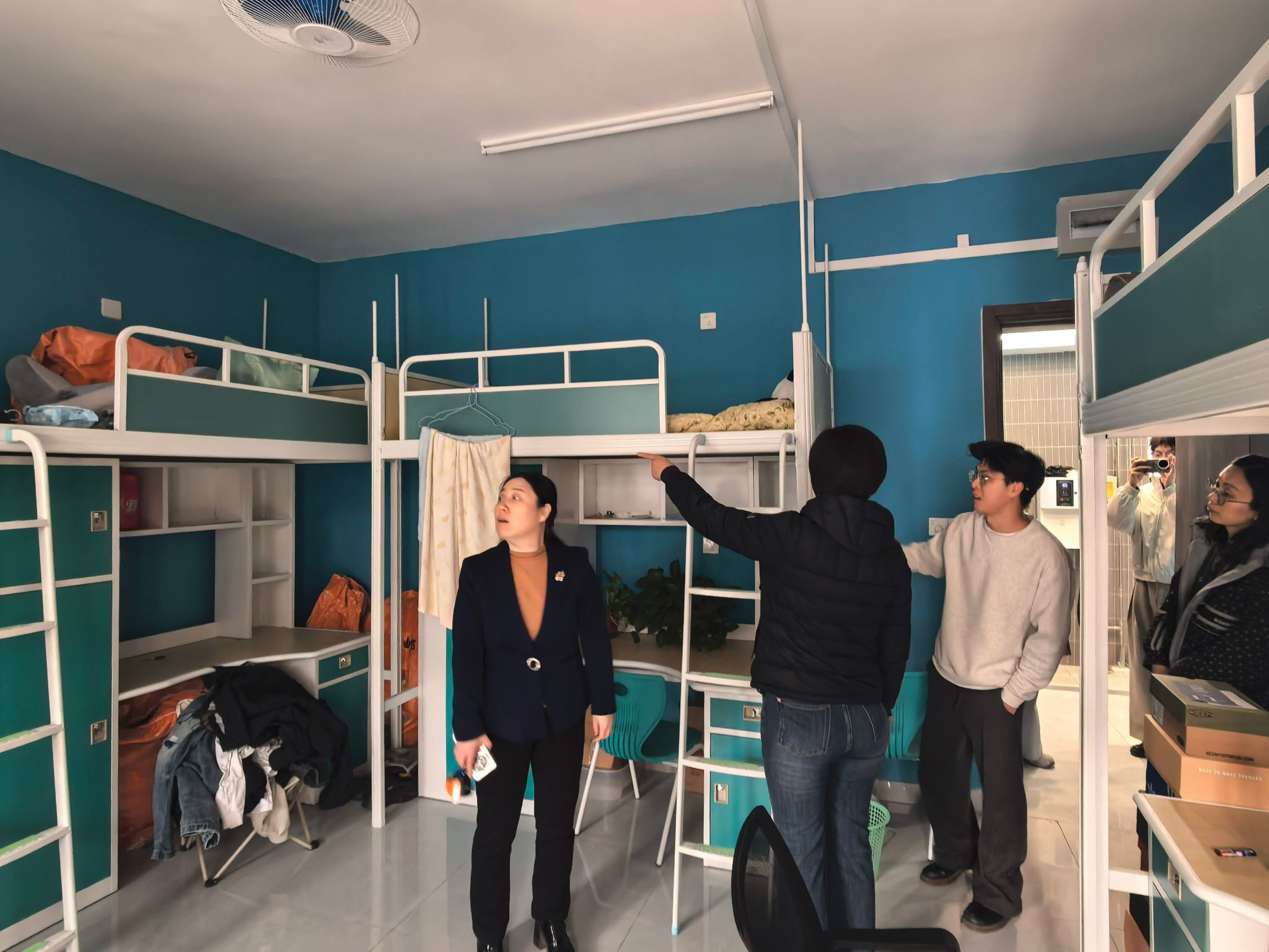 学院针对不同年级学生的特点进行精准关怀与指导。在研究生宿舍,老师重点询问同学们的课题研究进展、论文撰写情况以及未来的就业规划。在本科生宿舍,老师重点围绕宿舍内务整理、基础安全设施进行全面检查。老师耐心叮嘱低年级同学要养成良好的作息与卫生习惯,严格遵守晚归查寝等校纪校规,共同营造温馨和谐的生活环境。