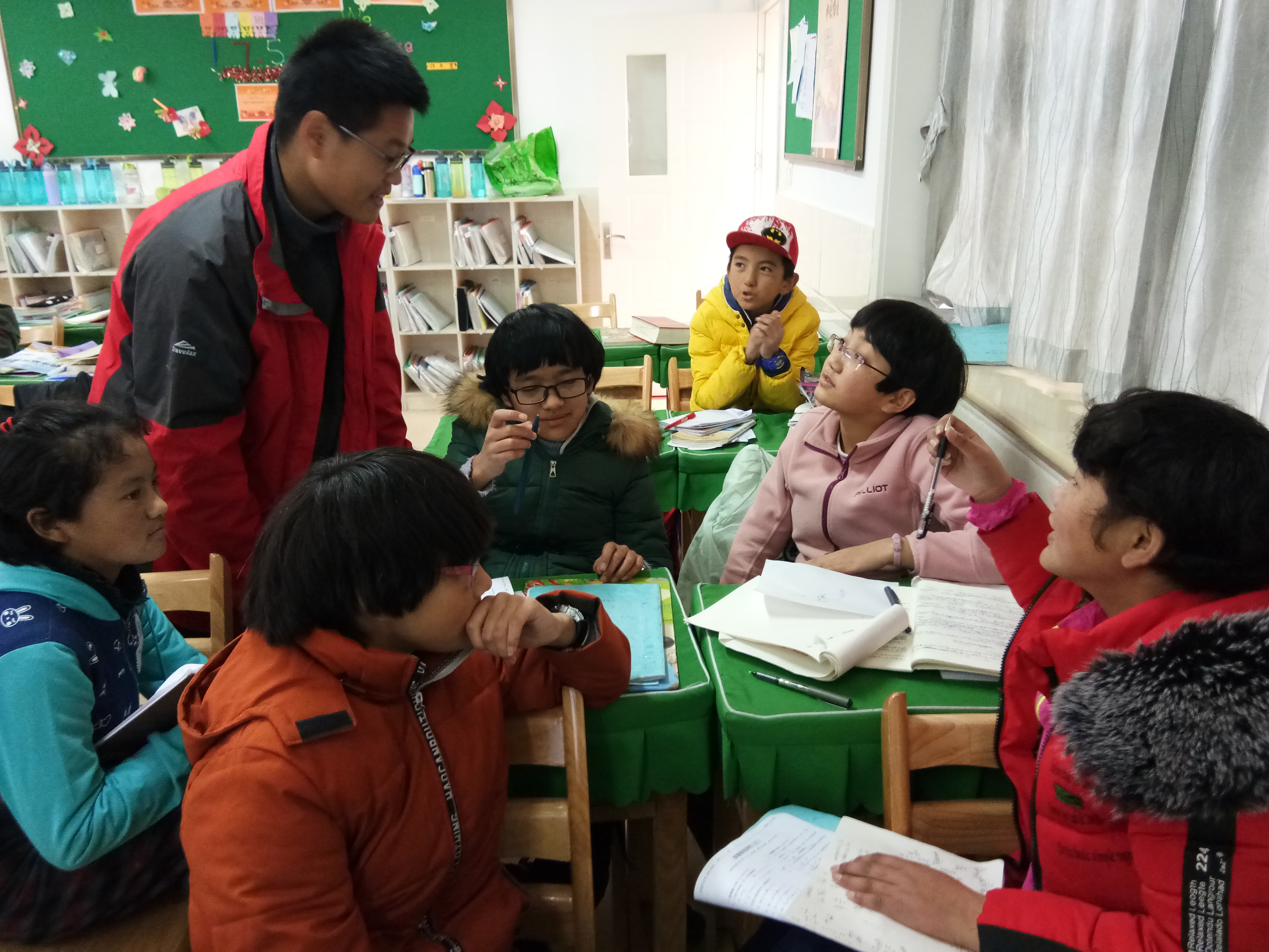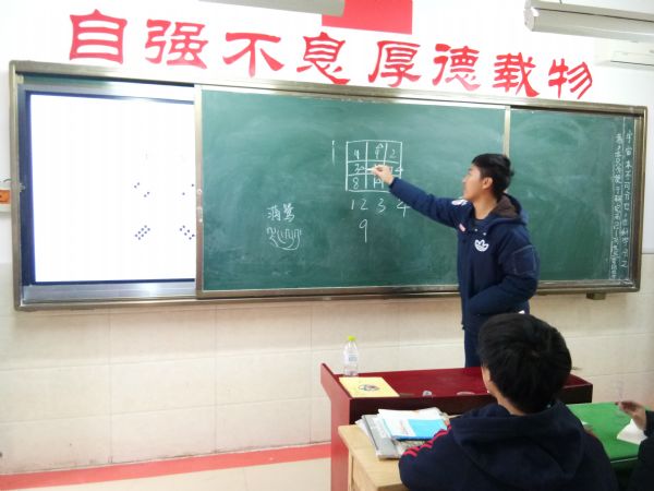 志愿者们充当了数学小老师,与同学们共享数学的乐趣。活动开始,志愿者们向同学们自我介绍,学说藏语,进行有趣的互动,拉近彼此之间的距离,活跃上课的气氛。接着,志愿者为同学们详细的描述了九宫格的由来,并解读九宫格的口诀。小老师们出题,同学们积极作答,争先恐后的举手说出自己的做法。志愿者给出事先出好的数学问题,同学们动笔运算,并进行热烈的讨论。课余时间,同学们向新朋友展示具有民族风格的表演,藏舞、藏语歌曲、写藏文,欢笑声、嬉闹声,充盈了整间教室。最后,志愿者们与同学们交流学习上的经验,生活上的趣事。志愿活动结束,志愿者与同学们告别。