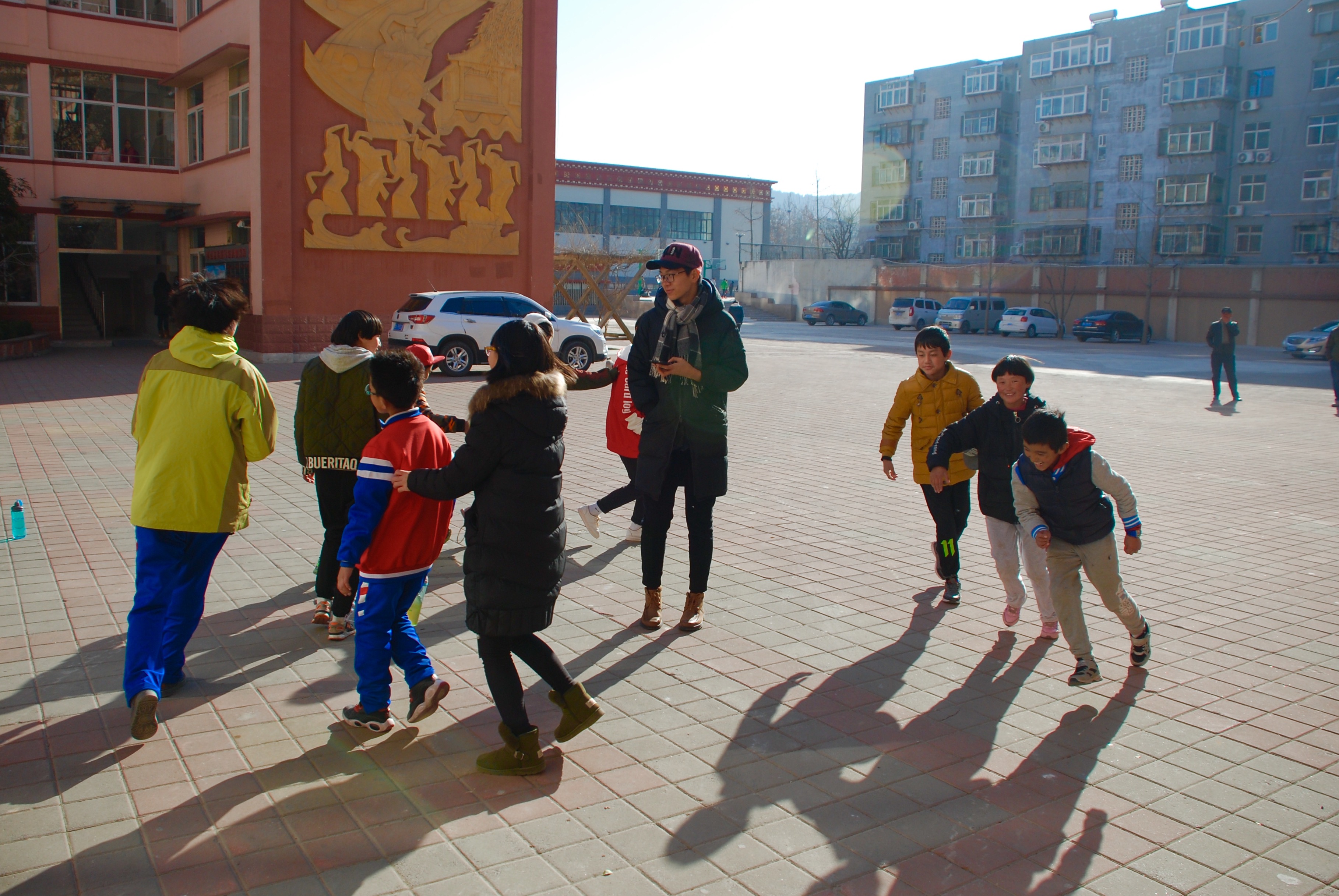 上午九时许,志愿者团队到达西藏中学,活动开始。志愿者们分成小组,进入班级,帮助同学们打扫教室,与藏族小同学亲切互动。志愿者为小同学们准备了各种生动有趣的游戏,如“大风吹”,“数7”,成语接龙等,引起了西藏中学纯朴而热情好客的小同学们的极大兴趣;小同学们对志愿者的到来感到十分惊喜,纷纷积极参与其中。游戏环节结束后,志愿者为同学们讲解了冬季感冒的相关知识,使同学们对冬季身体健康有了更多的了解。经过各种互动,同学们放下了起初的羞涩,与志愿者一起唱歌游戏,教志愿者们简单的藏语,为志愿者表演包含西域风情的藏舞操。藏族同学纯朴热情的笑脸,热情洋溢的歌舞,给志愿者留下了深刻的印象。上午十一时许,活动结束。西藏中学的小同学们与志愿者依依惜别,为志愿者献上洁白的哈达,互留联系方式并合影留念。