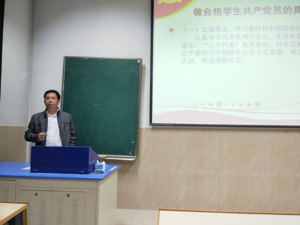 讲座开始,王纪辉副院长以“如何做一名合格的共产党员”开篇,介绍了党员的标准以及做一名合格学生党员的具体要求。其中,在提到党员的标准时,他分别从入党要求和党员的基本条件两方面进行了详细地论述,使入党积极分子了解到作为一个合格的共产党员,就要牢固树立共产主义信念,坚定全心全意为人民服务的决心。之后,在讲述学生党员的具体要求时,王院长强调,合格的学生党员应该有坚定的政治立场,始终与党保持一致。同时,还要不断学习党的新理论、新思想特别是要认真学习领会十九大报告中关于习近平新时代中国特色社会主义思想,牢固树立为服务同学的意识,做好学生的榜样,真正发挥学生党员的战斗堡垒作用。