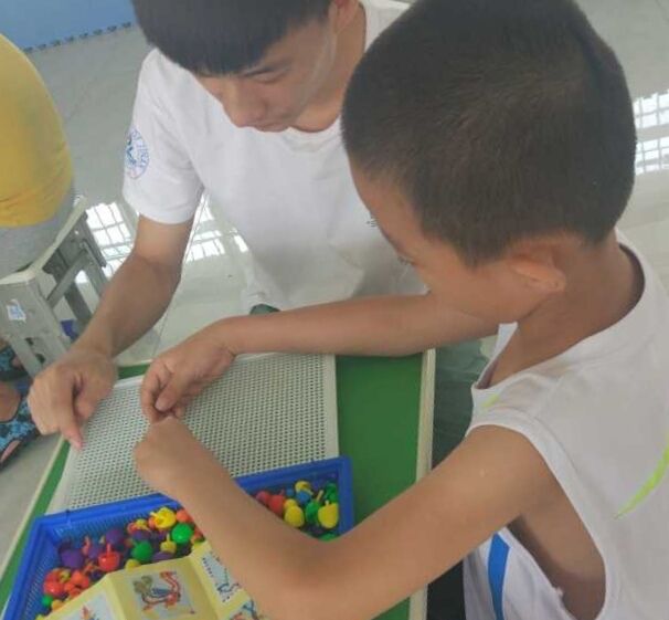 据康复中心徐玮利主任介绍,自闭症孩子可以感受到关爱,并通过长期教育及专门辅导后,是会有改变的。对此,ok138cn太阳集团古天乐的志愿者们对孩子们倾注了更多的关心与爱。在课堂上,自闭症儿童集中注意力并不容易,需要志愿者们时刻绷紧神经,积极配合老师,为的就是让更多孩子集中注意力,学习更多生活技能;在课下,他们蹲下身,与孩子们亲切对话,带他们玩游戏,帮助他们锻炼身体。孩子们在志愿者的积极开导下也露出了一张张欢乐的笑脸,发出阵阵笑声。志愿者同学们也在照顾孩子的同时看到他们的阳光和勇敢,感受到他们的纯真和美好。相信有了志愿者的帮助,孩子们能够走出自我封闭的世界,搭建一座“星星”与“地球”的桥梁。