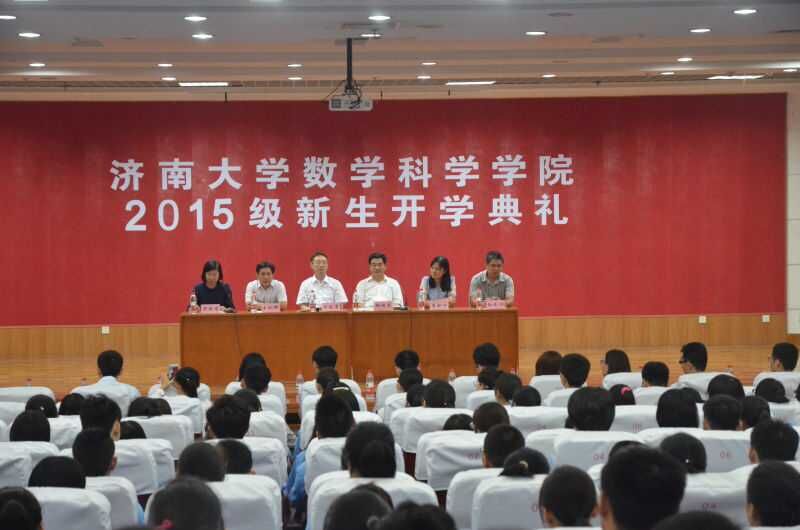 典礼在庄严的《义勇军进行曲》中拉开帷幕。随后,王纪辉副院长宣读了《ok138cn太阳集团古天乐关于聘任2015级班主任及助理班主任的决定》。孙元功教授代表数学院全体师生发言,告知新生要尽快调整心态,抓住新起点,正视自己的学业,转变学习方式,脚踏实地。在校学生代表、曾担任院学生会副主席的章杰茹同学用三年大学生活经验对新生们提出要重视学习方法和学习习惯,与同学们分享了自己的学习方法,告诉同学们要多参与各种活动锻炼自己,把握自己的未来。