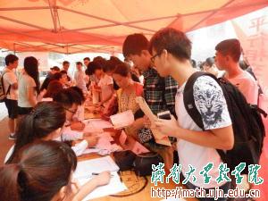 在本次迎新工作中,我院的工作人员和志愿者用真诚的微笑温暖每一位新生,用热情的服务感染每一位新生,他们让前来报到的学弟学妹们感受到离家求学后并不孤单,让他们在异乡也能够体会到家的温暖。我们也相信,14级新生的到来,也必将会给我们数学院注入一股清新的活力,让我们共同期待:济大数院的未来更加光辉灿烂!