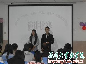 本次比赛共分为选手演讲和评委打分两部分。首先,主持人介绍了到场嘉宾,并宣布了比赛规则。随后,参赛选手们以“感恩自强励志成长”为主题进行了自己的演讲。演讲过程中,选手们充满激情的演讲和精湛的的文笔起了在座人员强烈的情感共鸣,激情澎湃的声音更是让现场掌声雷动,选手们结合自己身边的感恩事例阐述了自己对感恩的理解,拉近了演讲者与观众距离,现场气氛十分融洽。演讲结束后,评委根据选手们的表现进行打分,其中数学1302班刘同飞和韩悦同学凭借着自己慷慨激昂的演讲获得了一等奖的优异成绩。最后,评委们为获奖的同学颁发奖状以示鼓励。