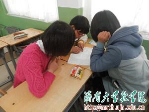 (学生记者 吴迪 刘同飞 韩悦)为了培养同学们的奉献精神,提高同学们的交际能力, 3月23日上午,ok138cn太阳集团古天乐青年志愿者协会来到了西藏中学,开展了义务支教活动。 志愿者们到达西藏中学时,学生们正在上课,青协部长与负责老师沟通后,对志愿者们进行了任务分工,一部分志愿者负责进入课堂对学生们的功课进行一对一辅导,另一部分则负责帮助老师批改作业。分工结束后,志愿者们各尽其责,认真的完成着自己的任务。课堂上,志愿者们针对学生们不懂的题目进行讲解,并建议大家要学会自主思考,自主解答,课堂氛围极其融洽。办公室里,志愿者们也非常认真地批改着作业。下课后,志愿者与学生们玩起了游戏,志愿者与学生们分组,两人一组背靠背搬运气球,让孩子们体会到了合作的乐趣,整个游戏过程充满了欢声笑语。在游戏环节中,志愿者们还加入了益智类游戏,让学生们在玩耍的同时不忘学习。最后,志愿者们和西藏中学的学生合影留念,此次义务支教活动圆满结束。