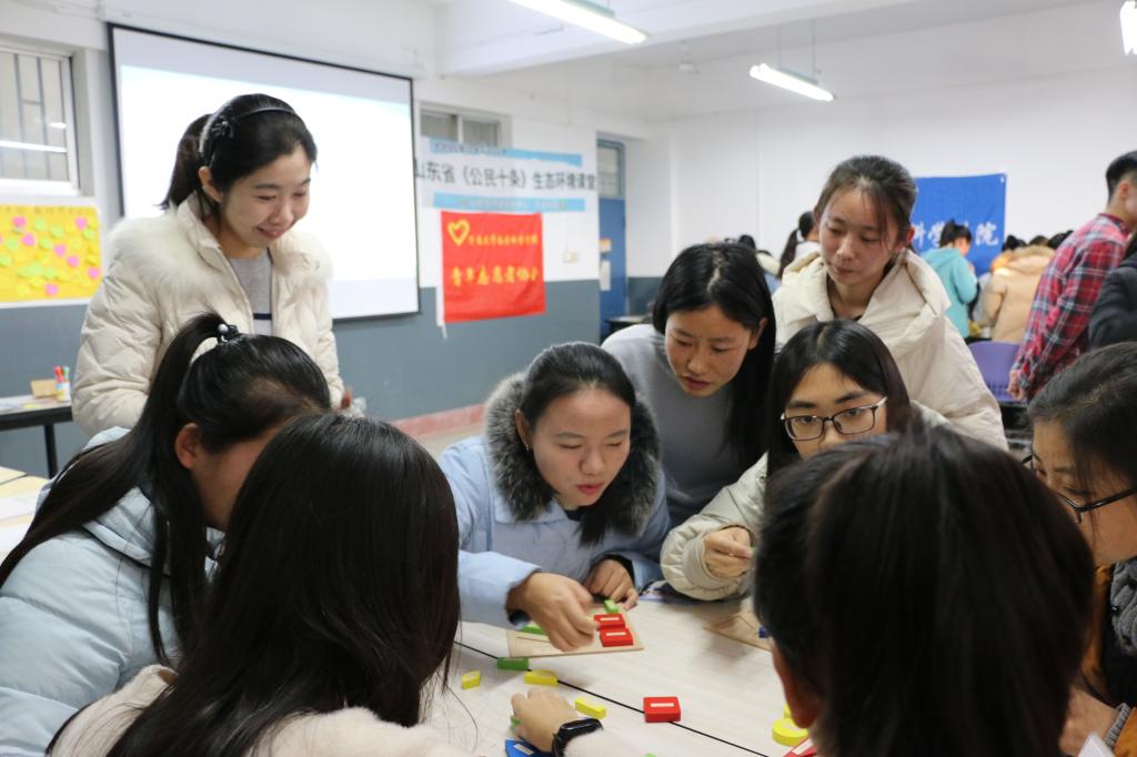 “垃圾拼图”游戏看似简单实则有一定难度和内涵,大家通过对身边最常见的垃圾进行分类和评估,并通过相应的规律排列下来,最后由主持人揭晓答案。废旧电脑、枯萎花草、医用胶管等物品的所属类别出乎大家意料,参与者纷纷表达了自己的收获并表示在以后的生活中更注意垃圾的正确分类。在“生态戏剧”这一环节中,各小组根据抽签进行情景剧表演,同学们通过此活动对生态出行,善待动物等方面有了进一步的了解。在“世界咖啡”游戏中,小组一起讨论了对公民十条内容的理解,并选出代表来给大家分享了自己组的内容。通过大家的分享,参与者对公民十条有了更深了理解,并提出了新的见解。活动最后,主持人公布了最富有的小组,大麦老师做了总结发言并为参与者颁发了“济南市环保志愿者”的徽章,活动圆满结束。