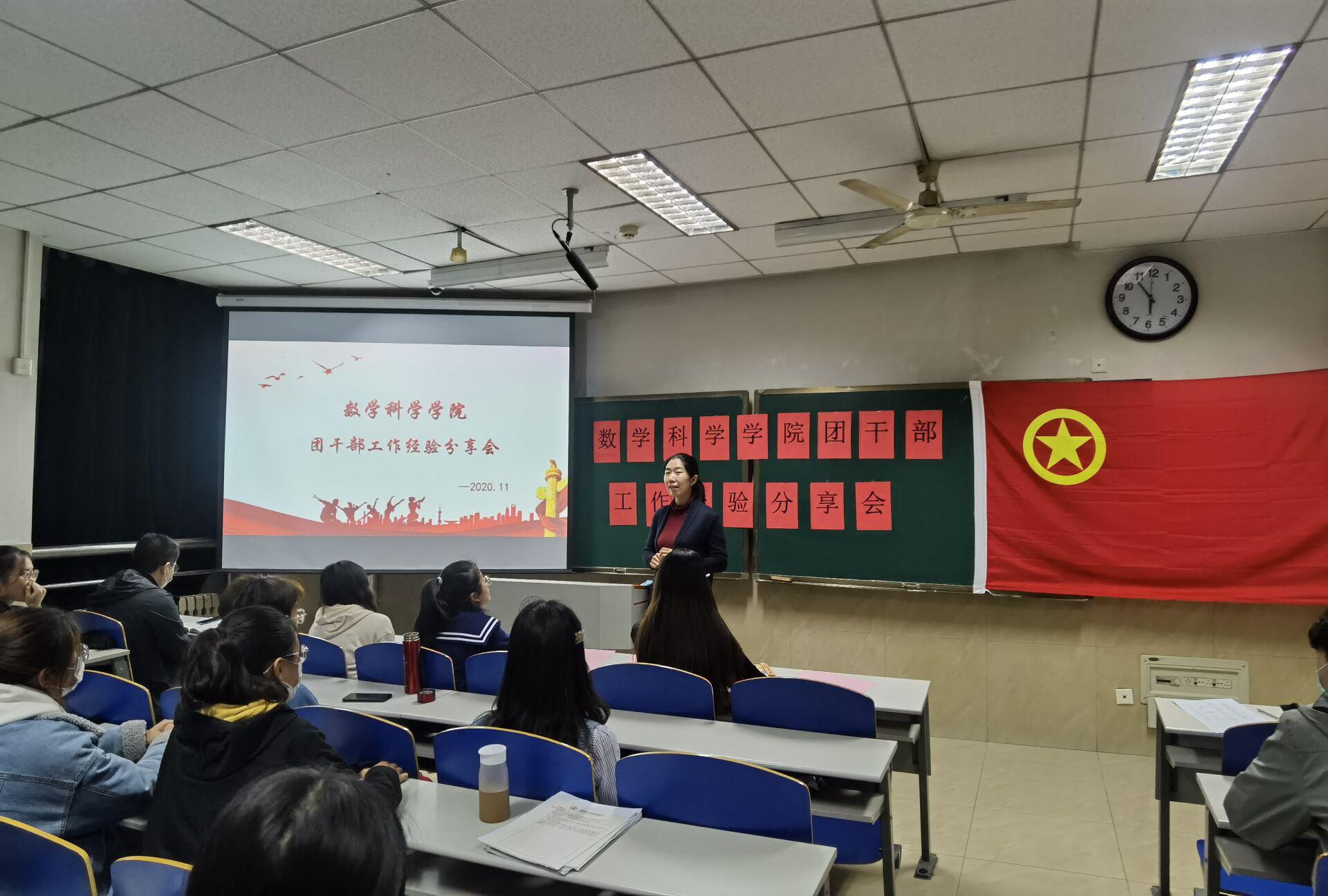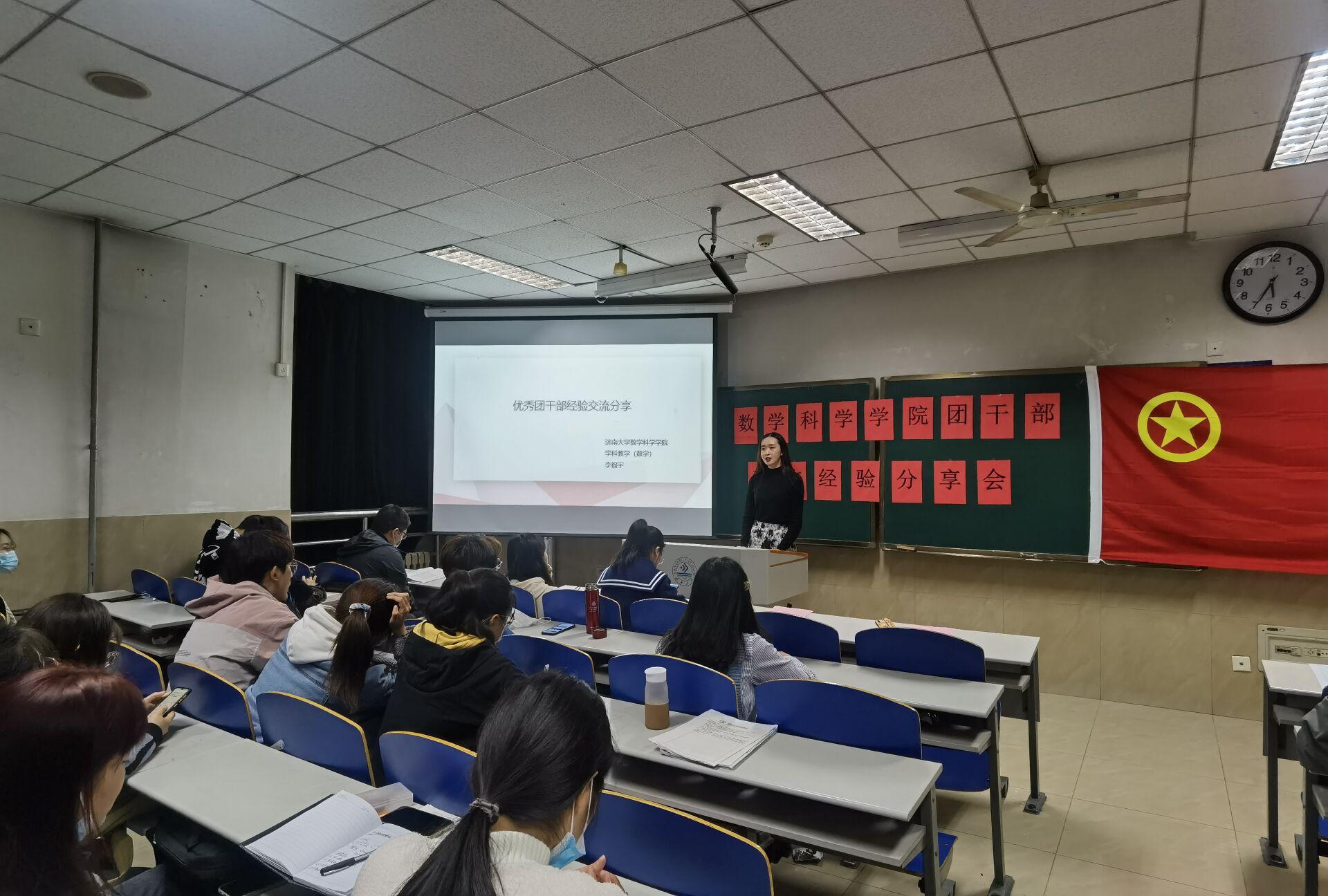 为加强团干部的工作交流,把握学生团干部工作的重心,确保各级团组织工作有序开展,开展了团干部工作经验交流分享会。会议邀请了原数学1601团支部(曾荣获校十佳团支部)的团支书李福宇、现数学1802团支部(获校级优秀团支部)的团支书邢惠隋、现金数1801团支部(获校级优秀团支部)的团支书王子慧三位同学向参会的团干部们分享工作经验并为大家答疑解惑,最后由赵华磊老师做总结,此次交流会让学生团干部坚定不移走中国特色社会主义群团发展道路,紧紧围绕、始终贯穿为实现中国梦而奋斗的主题,坚定理想信念,培育高尚品格,练就过硬本领,勇于创新创造,矢志艰苦奋斗中谱写新时代的青春之歌。
