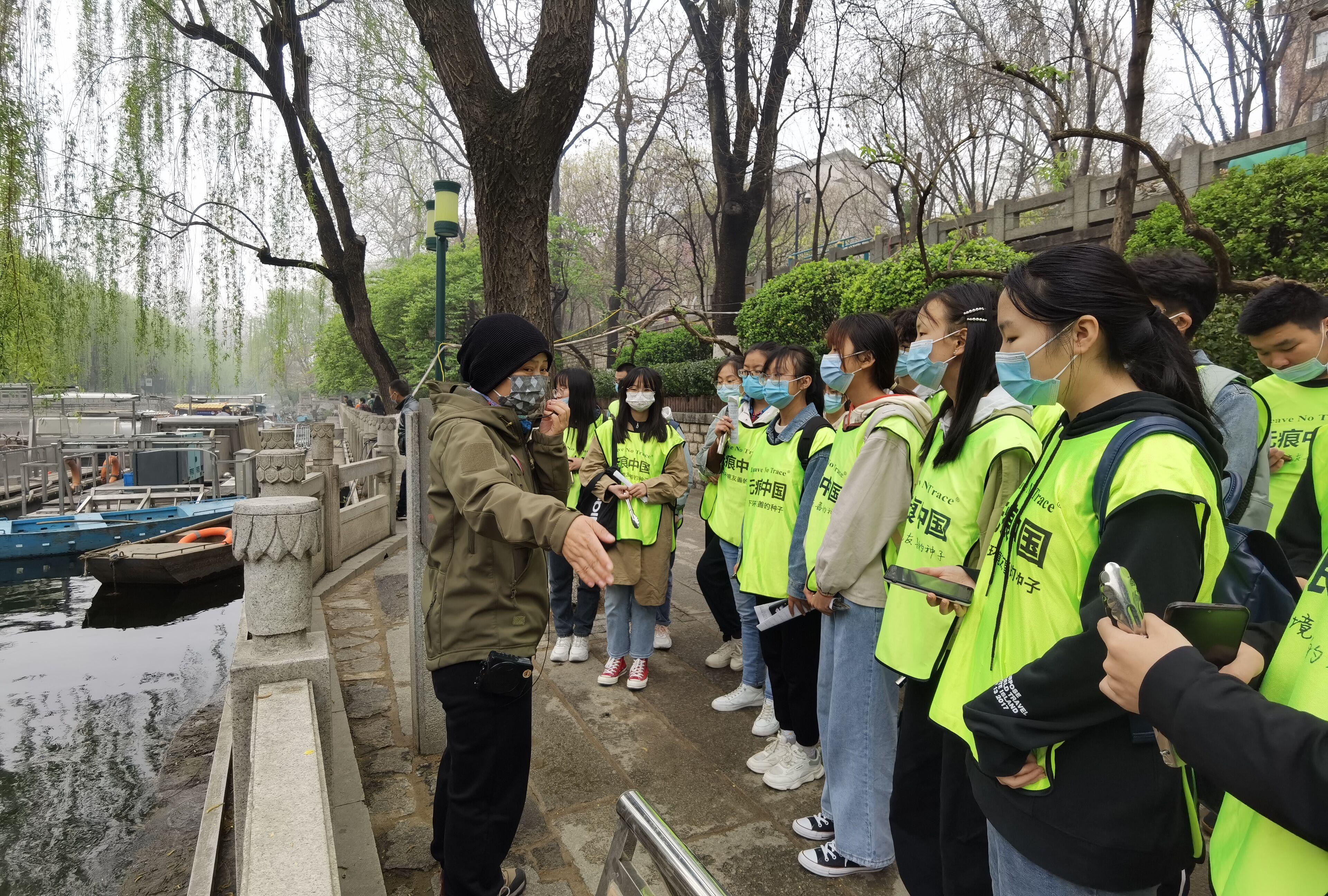 3月27日上午,同学们一早就抵达了黑虎泉活动现场。活动伊始,负责人分发了带有“无痕中国”标识的马甲和专用的垃圾夹。同学们在讲师的讲解过程中了解到了“泉城”这个称号的由来和济南四大泉群的形成;了解到一百年前济南人是通过泉水井和叫卖来取水用水的。最后,同学们参观了一个顶部为正方形有开口的亭子——金虎亭,听讲师介绍了它的四大特点,让同学们对这里有了更多的了解。经过讲师一上午的讲解,同学们收获颇丰,深刻体会到了黑虎泉所蕴含的文化内涵,也为未来的志愿活动打下了坚实的基础。同学们一边听讲师讲解,一边捡拾垃圾,成为黑虎泉一道亮丽的风景线,获得了游客们的称赞。