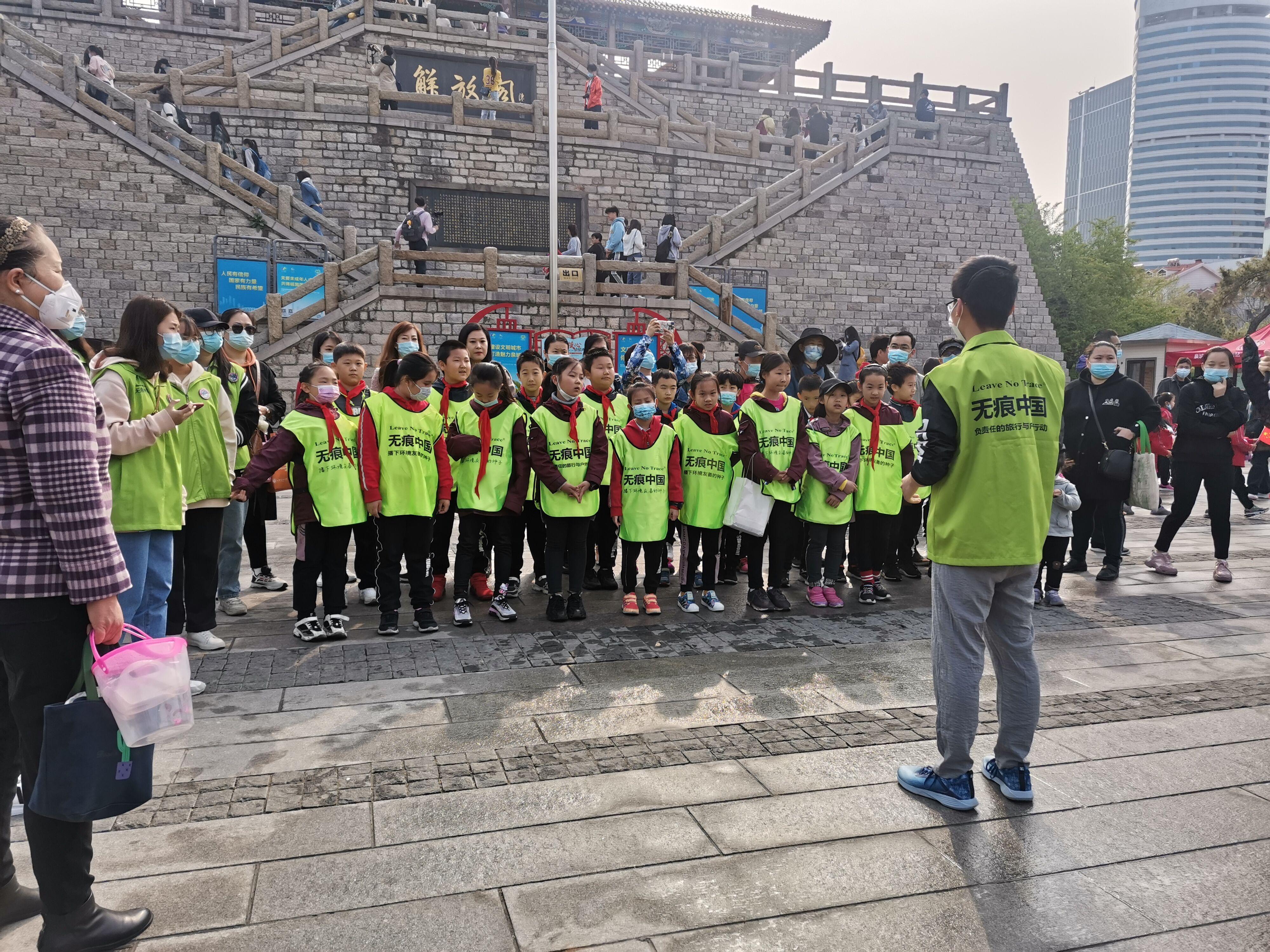 活动伊始,志愿者们为小朋友分发了带有“无痕中国”标识的马甲和专用的垃圾夹,教给他们约定集合的动作,向他们展示安全规则旗并宣讲。通过讲解,小朋友们了解到了“泉城”这个称号的由来和济南泉水形成的地理原因;了解到一百年前济南人是通过“隔窗取水”和“水夫毛驴”来取水用水的。最后,同学们带领小朋友参观了一个顶部为正方形有开口的亭子,介绍了它的四大特点。志愿者们生动细致的讲解让小朋友们对黑虎泉有了更加深入的了解。在游览过程的同时,小朋友们不忘爱护环境的宗旨,用垃圾夹捡道路上的垃圾。