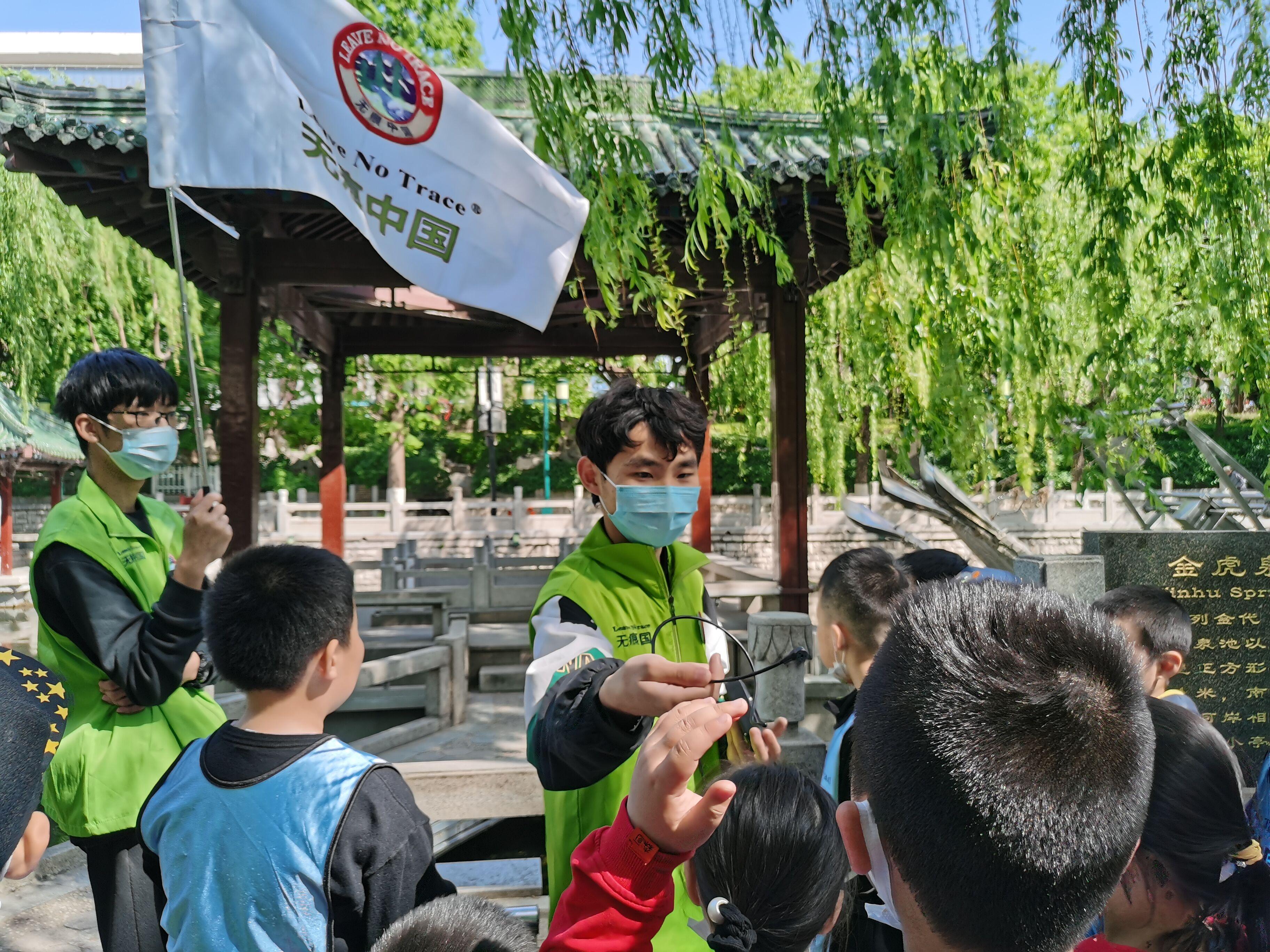 为增强大学生社会实践能力,宣传保护环境,从现在做起,从小事做起的环保理念,ok138cn太阳集团古天乐青年志愿者协会与趵突泉小学2019级2班的小朋友们于4月17日9:00在济南市黑虎泉景区组织了“无痕”环境教育活动。在此次活动中,志愿者们摇身一变,成为了为小朋友耐心讲解的小讲师。