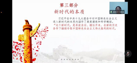 2021年是中国共产党成立一百周年,为组织引导青年学生将理论学习与社会实践相结合,从党的百年伟大奋斗历程中汲取继续前进的智慧和力量,深入学习贯彻习近平新时代中国特色社会主义思想,将学习党史与讲述党的故事相结合,回顾历史,展望未来,深入基层,深入人民群众,学院开展“星火”——党史宣讲活动,并建立实践队。实践队立志于让更多的人学习党的艰辛历程,感悟党的历史就是一部华夏儿女不甘凌辱、奋起抗争的民族崛起的复兴史。同学们从中体会到革命者的艰辛与不易,学习到他们身上百折不挠的精神与品质。回顾党的百年历史,在新民主主义革命时期,中国共产党人以坚定的信心升华出压倒一切的革命英雄主义和乐观主义精神,在极其艰难的情况下保持昂扬的斗志,展现出“我们中华民族有同自己的敌人血战到底的气概,有在自力更生的基础上光复旧物的决心,有自立于世界民族之林的能力。在课程最后,授课讲师表示,历史是最好的营养剂。党的百年光辉历史,展现了中国共产党伟大的精神,构筑起中国共产党人的精神谱系。通过此次活动,激发了同学们的爱国热情、鼓舞了斗志,定在以后的生活中能够坚定奋斗初心,牢记使命担当。