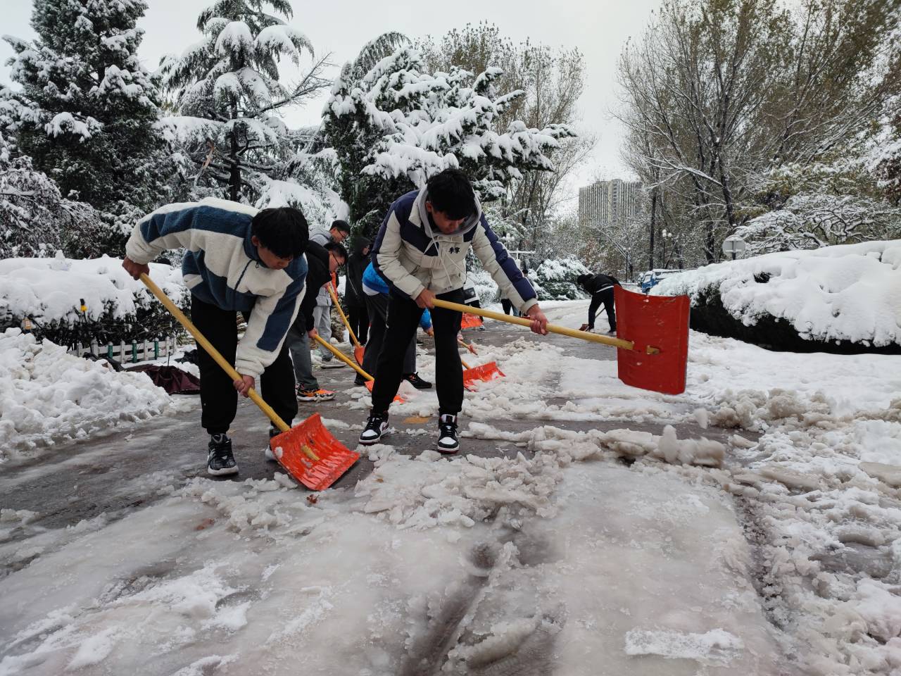 2021年的立冬中央气象台发布寒潮黄色预警,济南迎来了今冬首场雪,道路积雪情况严重。为了减小积雪对同学们正常出行的影响,保持校园环境的整洁,确保周一同学们正常上课通勤,ok138cn太阳集团古天乐于11月7日下午组织各班开展清雪除冰工作,对主干道积雪及时清除。
