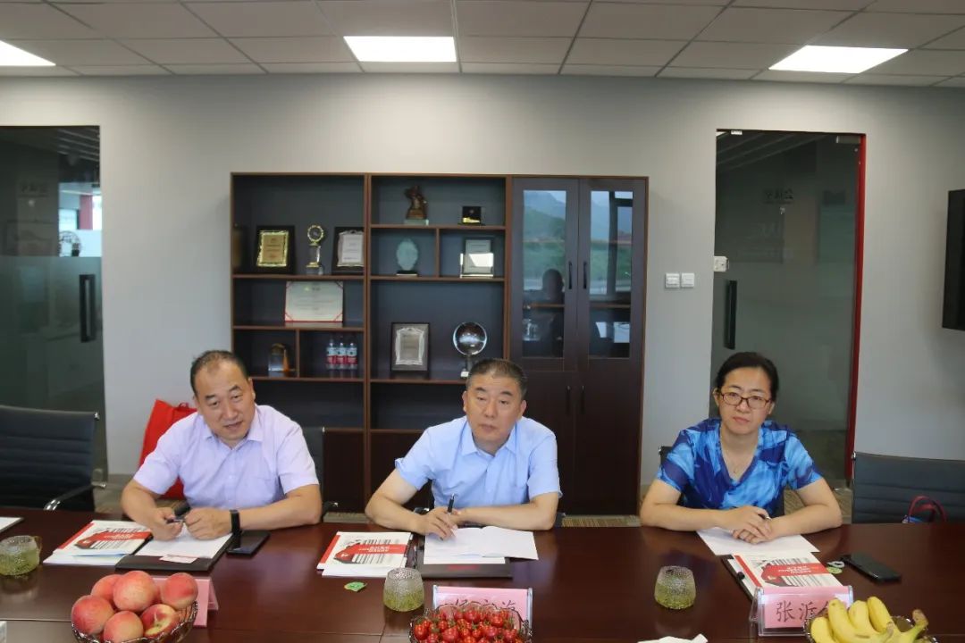 杨玉彬对侯启海一行的到来表示热烈欢迎,并简要介绍了公司的业务板块、发展规模以及企业文化的发展情况。他说,校企合作是新形势下企业发展进步的内在要求,通过与高校开展深度合作,能达到资源共享、优势互补的目的。相信通过双方共同努力,一定会把校企合作做实、做大、做强,实现学生、学校、企业三方共赢。侯启海对杨玉彬给予学院学生实习实训提供的机会和平台表示诚挚感谢,并简要介绍了学院的专业设置、人才培养、校企合作等情况。他表示,校企合作是学院人才培养的需要,也是企业发展的需要,希望双方可以开展多层次、多形式、多领域的合作,建立互利共赢的产教融合和校企合作模式,在有效促进学生实习就业的同时,解决人才培养与社会需求对接不紧密的问题。董俊杰介绍了学校在学生实习实训基地的建立、学生高质量就业、产教融合发展等方面的基本情况,希望双方以实习实训基地揭牌为契机,加强校企合作,着力创新人才培养模式,全面提高人才培养质量。张沂红介绍了学院近三年毕业生就业实习情况,并希望双方能够多方面、全方位地深入合作,真正发挥就业实习基地的作用。