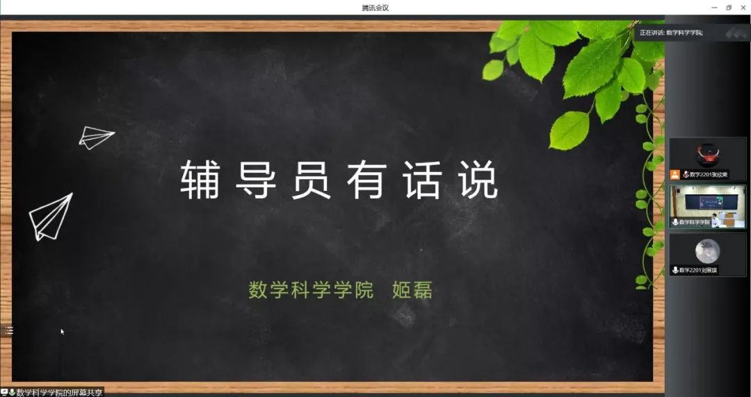 在“屏与屏”相见、“键与键”交流、“心与心”互连的“第一课”线上课堂上,辅导员姬磊结合学院关于线上教学工作的相关精神和具体安排,对学生在线上教学开始后的学习纪律、课堂秩序等方面做了更加详细的要求,要求学生端正学习态度,遵守教学安排,切实做到“在家如在校,听课不松懈”。