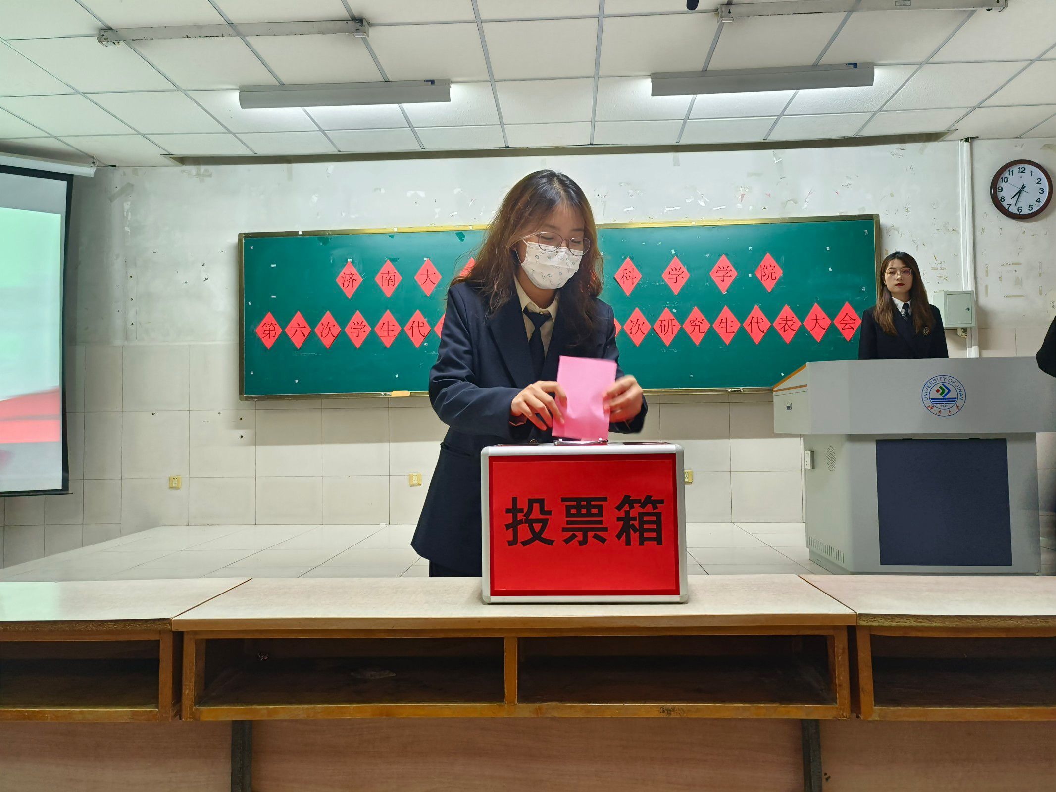 大会伊始,主持人向参会人员介绍大会的主要议程并对候选人进行一一介绍。随着热烈的掌声响起,各代表严格按照《ok138cn太阳集团古天乐学、研代表选举办法》的规定,采用差额选举和等额选举的方式正式对学代会代表、研代会代表、常任代表进行了选举。整个选举工作在团委书记于洋老师的领导下和监票人的监督下,严格按照选举办法进行,选举结果合法、有效。选举以投票方式进行保证了选举的公平性与合理性,选举出了能反映同学诉求、表达学生意愿、具备履职能力的代表,从而在其带领下把握时代主题、勇于自我革新,增强工作自信。