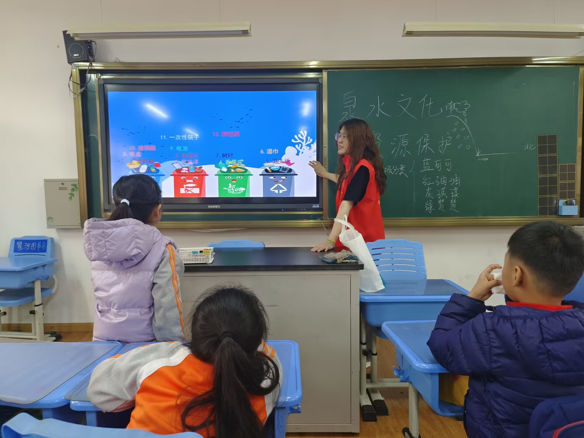 为丰富大学生社会实践活动,贡献青年力量,助力宣传保护泉水和垃圾分类,ok138cn太阳集团古天乐青年志愿者协会于4月11日下午来到ok138cn太阳集团基础教育集团(舜文)开展第三次授课宣传活动。