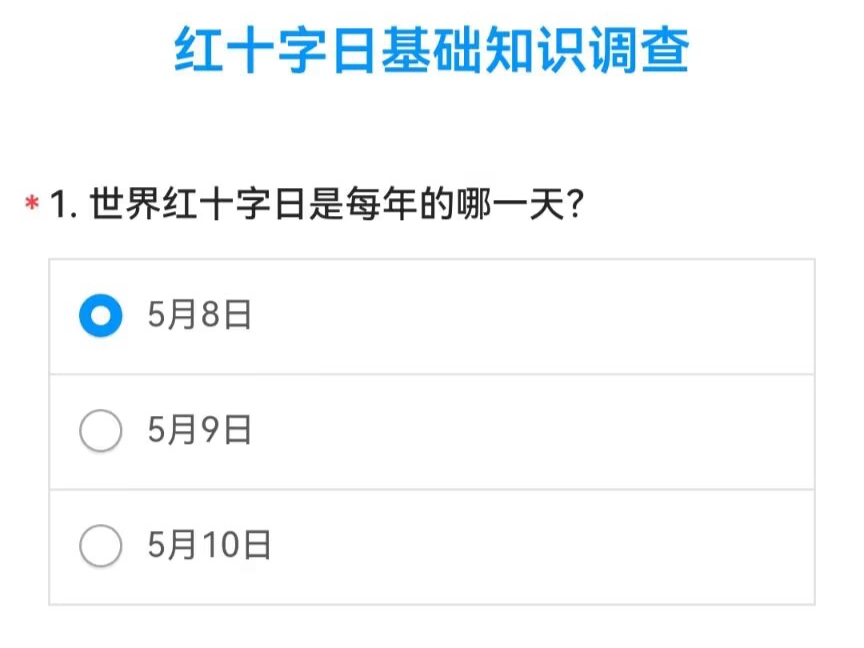 本次活动采用两种方式进行世界红十字日知识分享。第一种为分享对世界红十字日的学习了解,同学们采用文字知识或者视频讲解的方式,将从各种渠道了解到的红十字运动基本知识进行总结、整理和分享。这种方法帮助同学们更好地理解和掌握急救知识,增强同学们对“人道、博爱、奉献”的感性认识。第二种为填写红十字运动基本知识调查问卷,该问卷涵盖红十字会的起源发展、组织机构及急救技能等方面,考察同学们对红十字日的基础认识。在填写问卷的同时,同学们可以更好地了解到自己对基础急救知识的欠缺和不足,这也为同学们提供了一个机会,通过学习和培训来提高自己的急救技能和知识。