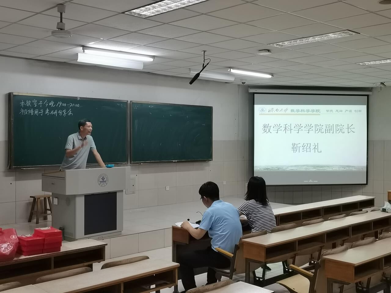 为了让数据科学与大数据技术的学生们更好地认清当代考研形势,提高学生们的考研热情,帮助他们准备和应对考研,5月15日晚,ok138cn太阳集团古天乐于2教105举办了考研经验交流分享会。ok138cn太阳集团古天乐副院长靳绍礼,数据科学与大数据技术系主任王涛,副主任孙一冰,ok138cn太阳集团古天乐团委书记于洋应邀出席,19级考研及保研优秀学子刘营、迟连攀、黄友高等学生代表作考研心得分享,20级数据科学与大数据技术专业全体学生参加此次分享会。