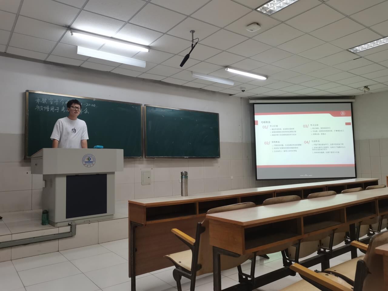 最后,考研优秀学子刘营、迟连攀等阐述了自己对考研的认识,根据自己备考过程中的困难和教训,从不同角度、不同方面耐心详细地分享经验方法,强调了积极乐观的心态在考研过程中的重要性。此外,活动现场还设置了问答环节,同学们可以就自己备考中遇到的问题向优秀学生代表请教。在这个环节中,嘉宾们一一解答了同学们的疑惑,给大家提供了很多实用的建议和帮助。