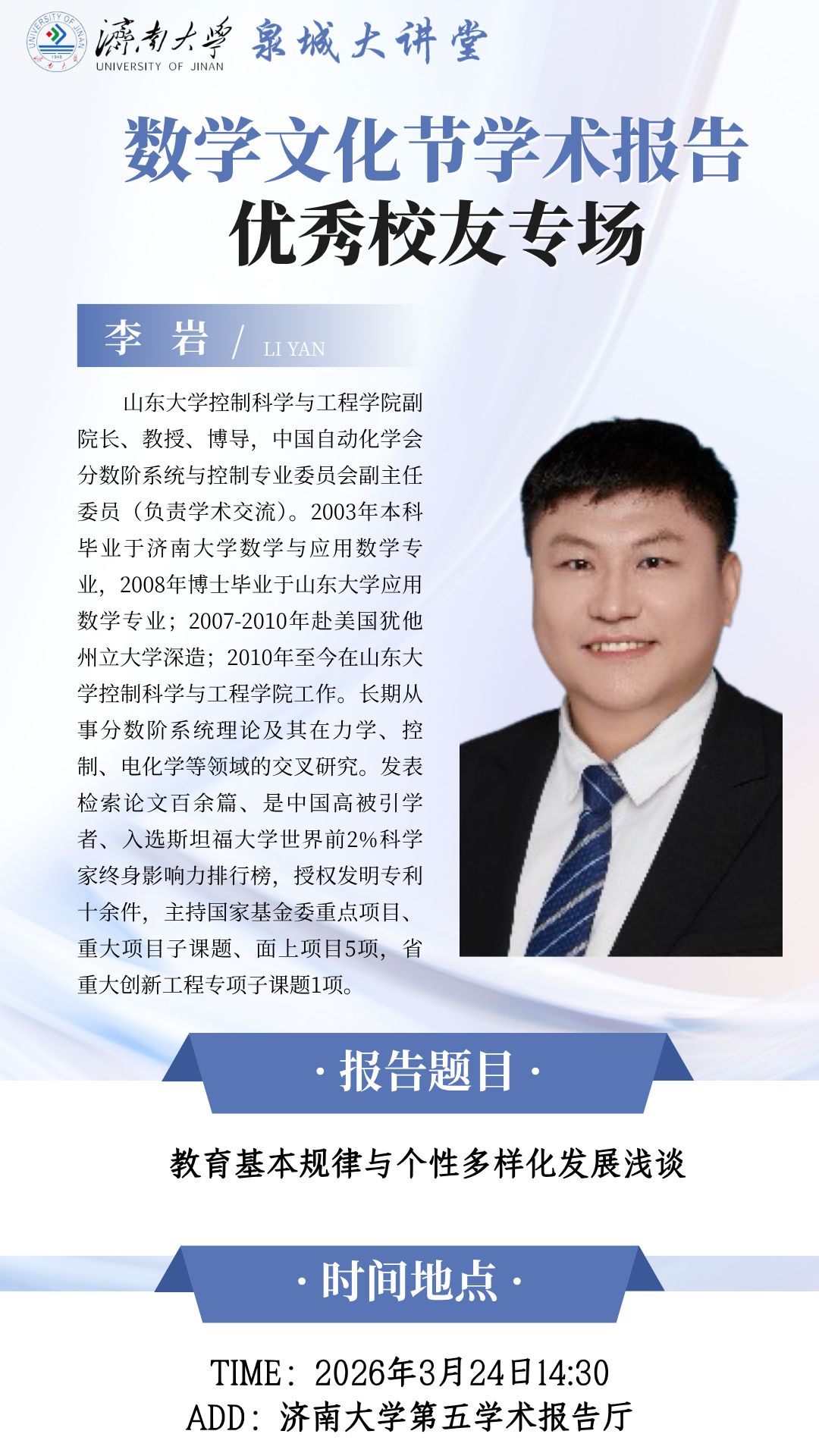 泉城大讲堂·ok138cn太阳集团第二届数学文化节学术报告:教育基本规律与个性多样化发展浅谈
