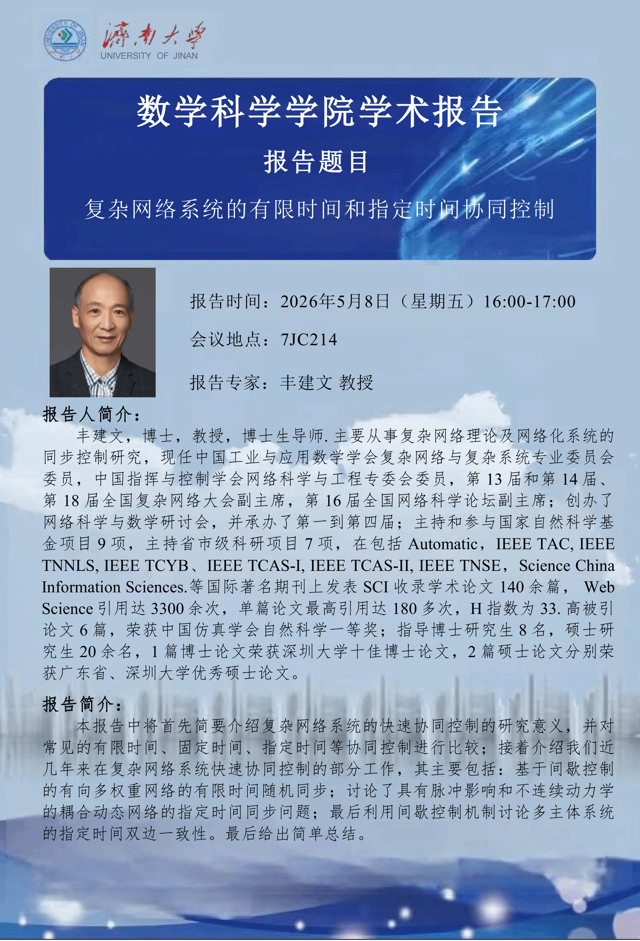 ok138cn太阳集团古天乐学术报告:复杂网络系统的有限时间和指定时间协同控制