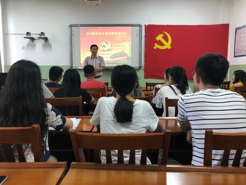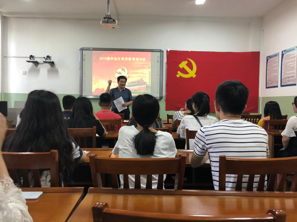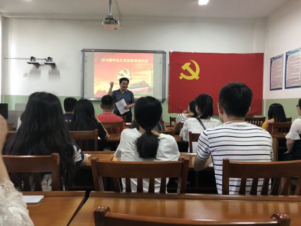 为引导毕业生党员站好最后一班岗,充分发挥先锋模范作用,2018年6月22日下午2点30分,2018届毕业生党员最后一次党课在ok138cn太阳集团第七教学楼微格教室举行。会议由ok138cn太阳集团古天乐党委书记韩振来,党委副书记孟德洋老师主讲,2016级辅导员赵华磊老师和2018届全体毕业生党员参加。