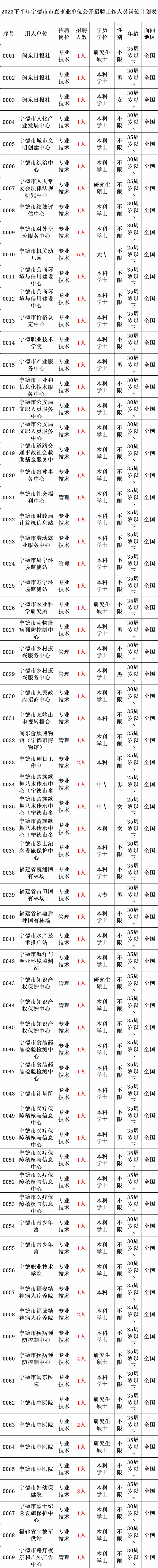 2023年下半年宁德市