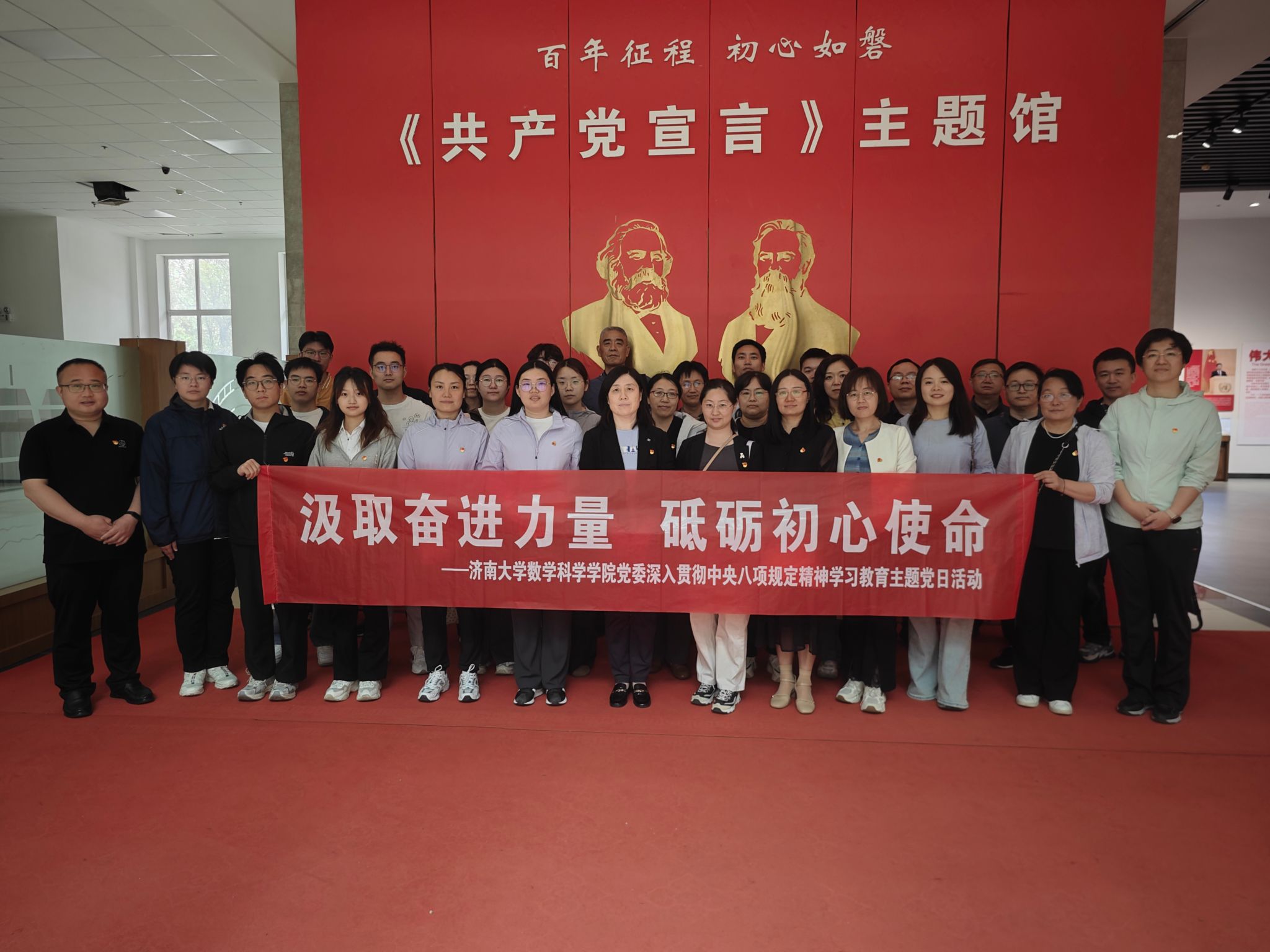 为深入学习习近平新时代中国特色社会主义思想,强化党员政治意识,在实践中锤炼党员党性,推进深入贯彻中央八项规定精神学习教育走深走实,ok138cn太阳集团古天乐党委于4月30日上午在山东交通学院《共产党宣言》展馆开展“汲取奋进力量 砥砺初心使命”深入贯彻中央八项规定精神学习教育主题党日活动,通过沉浸式研学、重温入党誓词、感悟思想伟力,进一步坚定理想信念、凝聚奋进力量。学院师生党员代表40余人参加,活动由ok138cn太阳集团古天乐党委书记崔英静主持。